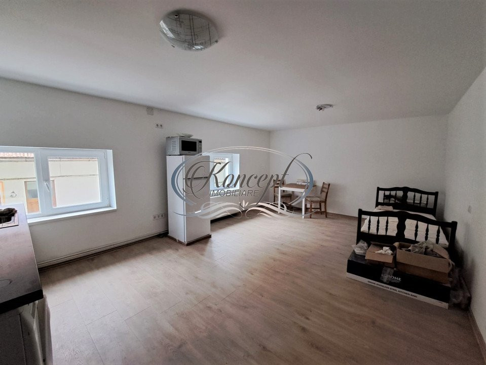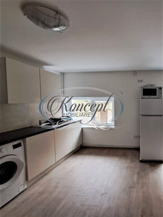 Koncept Imobiliare va ofera spre inchiriere un studio situat in zona ultracentrala, in proximitatea complexului Sora, situat la etajul 1, intr-un imobil cu 3 niveluri. Studioul in suprafata utila de 38 mp este compus dintr-o incapere deschisa care cuprinde dormitorul si bucataria, un hol si o baie. Acesta dispune de centrala termica proprie, plita electrica, cuptor cu microunde, masina de spalat si frigider si este disponibil imediat. Apartamentul are si un loc de parcare in curtea interioara contra cost si este amplasat in imediata apropiere a mijloacelor de transport in comun, centrelor comerciale, restaurantelor si altor puncte de interes din zona. Datorita pozitionarii, acest studio se preteaza atat pentru locuinta pentru o persoana sau un cuplu, cat si pentru activitati de birou cu trafic redus de persoane. Pentru informatii suplimentare, programarea unei vizionari sau pentru a afla oferta noastra completa, nu ezitati sa ne contactati telefonic, prin e-mail sau la sediul agentiei noastre de pe str. Aviator Badescu nr. 19, Cluj-Napoca sau pe str. Eroilor, nr. 58A, etajul 1, Floresti.