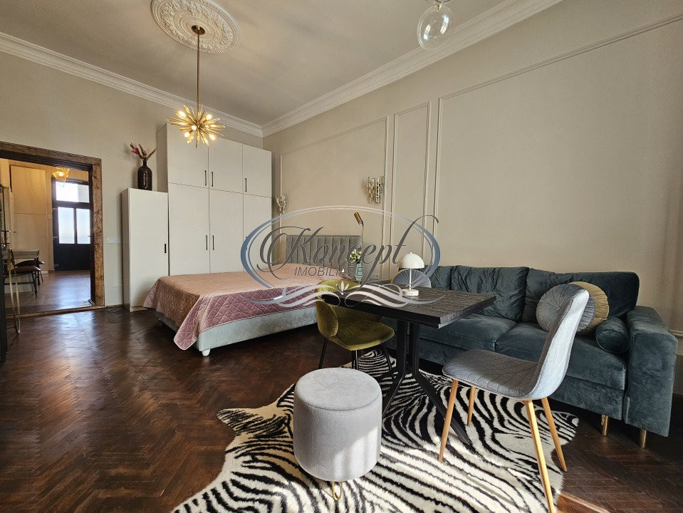 Koncept imobiliare va ofera spre inchiriere un apartament ultrafinisat aflat la etajul 2 al unei constructii monument, amplasata pe strada Dorobantilor, in zona Tribunalului Cluj. Imobilul are o suprafata utila de 46 mp, este compartimentat in hol, bucatarie, baie si dormitor cu zona de zi. Apartamentul este mobilat si utilat complet, ultrafinisat si utilat complet cu electrocasnice de ultima generatie, vesela, tacamuri si electrocxasnice mici. Locatia excelenta, finisajele de calitate, compartimentarea avantajoasa si view-ul catre centrul orasului recomanda apartamentul pentru locuinta accesibila pietonal catre punctele de interes ale orasului sau apartament de protocol. Disponibil imediat. Pentru informatii complete, pentru programarea unei vizionari sau pentru a afla oferta noastra completa nu ezitati sa ne contactati telefonic, prin e-mail sau la sediul agentiei noastre, pe str. Aviator Badescu nr. 19, Cluj-Napoca