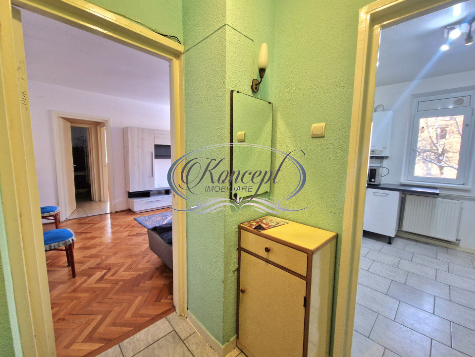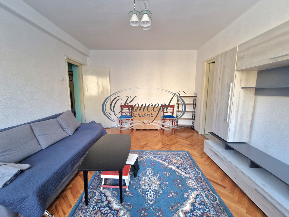 Koncept Imobiliare va ofera spre inchiriere un apartament situat in cartierul Gheorgheni, in zona Hotelului Royal, intr-o locatie apreciata pentru accesibilitate si liniste, la doar 2 minute de statii de autobuz si magazine, in imediata apropiere de scoli, Piata Hermes si Iulius Mall. Apartamentul este amplasat la etajul 2 al unui imobil cu regim de inaltime P+4, recent reabilitat termic, intr-o zona cu spatii verzi si trafic redus, cu orientare sudica ce asigura luminozitate naturala pe tot parcursul zilei. Locuinta are o suprafata utila de 44 mp si este compartimentata eficient, oferind un hol de intrare, bucatarie inchisa cu debara pentru depozitare, o camera de trecere ce poate fi folosita ca zona de living sau spatiu de relaxare, un dormitor separat, un al doilea hol cu spatii de depozitare, baie cu cada si geam pentru ventilatie naturala, precum si o logie inchisa cu termopan, cu suprafata de 4 mp. Apartamentul beneficiaza de finisaje clasice si se inchiriaza complet mobilat si utilat, fiind dotat cu frigider, aragaz, cuptor cu microunde si masina de spalat rufe. Incalzirea se realizeaza prin centrala termica proprie si calorifere, ceea ce permite un control eficient al costurilor de intretinere. Exista posibilitate de parcare in zona. Pozitionarea in cartierul Gheorgheni, proximitatea fata de puncte de interes major, orientarea sudica, compartimentarea practica si blocul reabilitat termic sunt elemente care diferentiaza aceasta proprietate si o fac potrivita pentru un cuplu sau studenti care isi doresc acces rapid catre centre comerciale, universitati si zone de interes urban, intr-un cadru echilibrat si linistit. Pentru informatii suplimentare, programarea unei vizionari sau pentru a afla oferta noastra completa va stam la dispozitie telefonic, prin e-mail sau la sediul agentiei noastre, pe str. Aviator Badescu, nr. 19, Cluj-Napoca.