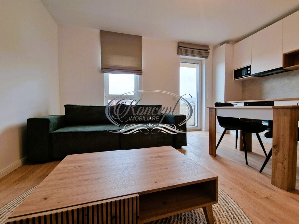Koncept Imobiliare va ofera spre inchiriere un apartament amplasat in cartierul Iris, pe strada Oasului nr. 151. Acesta se afla la etajul 4, are expunere Vestica si panorama spre zona de case a cartierului. Apartamentul dispune de o suprafata utila de 45 mp plus un balcon de 5 mp, finisaje moderne, incalzire in pardoseala, este semidecomandat si este compus din: dormitor, living open-space cu bucataria, dressing walk-in, balcon, baie si hol. Apartamentul se inchiriaza complet mobilat si utilat cu: frigider, masina de spalat vase, masina de spalat rufe, cuptor cu microunde, TV, etc., iar pentru confortul dumneavoastra, in pret este inclus si un loc de parcare in subteranul imobulului. Datorita zonei accesibile si compartimentarii avantajoase, apartamentul se recomanda ca locuinta pentru o persoana singura sau un cuplu. Disponobil din 1 Martie. Pentru informatii suplimentare, programarea unei vizionari sau pentru a va prezenta oferta noastra completa, nu ezitati sa ne contactati telefonic, prin e-mail sau la sediul agentiei noastre de pe str. Aviator Badescu nr. 19, Cluj-Napoca.