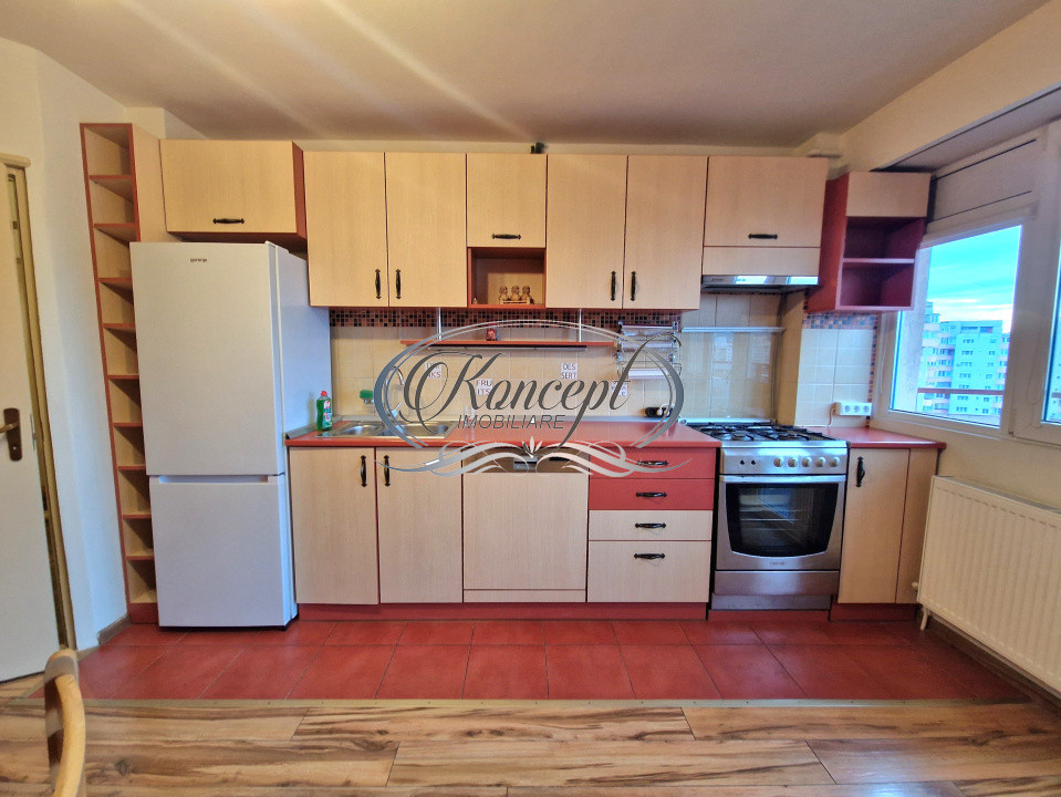 Koncept Imobiliare va ofera spre inchiriere un apartament situat pe Bulevardul 21 Decembrie 1989, in cartierul Marasti, zona OMV, una dintre cele mai accesibile si bine conectate zone ale orasului Cluj-Napoca. Proprietatea beneficiaza de acces imediat la mijloace de transport in comun, supermarket Profi, Biblioteca Judeteana Octavian Goga, precum si multiple servicii comerciale situate la parterul imobilului, precum farmacii, banci si magazine. In proximitate se regasesc Iulius Mall, FSEGA si centrul orasului, oferind un stil de viata urban complet. Apartamentul este amplasat la etajul 7 din 11, intr-un imobil bine izolat termic si fonic, aspect important avand in vedere pozitionarea intr-o zona circulata. Suprafata utila este de 50 mp, la care se adauga doua balcoane ce insumeaza aproximativ 5 mp. Un balcon este inchis si are acces din dormitor, iar cel de-al doilea este deschis, cu acces din bucatarie, oferind o priveliste panoramica asupra orasului. Compartimentarea este practica si echilibrata, fiind compusa din hol de intrare cu spatii de depozitare, debara, bucatarie separata cu camara de alimente prevazuta cu geam, living cu canapea extensibila si dressing, dormitor si baie dotata cu cada. Orientarea nord-sudica asigura o iluminare naturala constanta pe parcursul zilei, fara supraincalzire. Apartamentul se inchiriaza complet mobilat si utilat, cu finisaje moderne si dotari care asigura un confort ridicat: masina de spalat rufe, uscator de rufe, frigider nou, masina de spalat vase, aragaz cu cuptor, hota, cuptor cu microunde, aer conditionat amplasat in zona holului pentru o climatizare eficienta, precum si doua televizoare. Tamplaria PVC cu geam termopan contribuie suplimentar la izolarea termica si fonica a spatiului. Incalzirea se realizeaza prin centrala termica proprie cu calorifere. Un avantaj important il reprezinta includerea in pret a unui loc de parcare exterior, un beneficiu valoros pentru zona Marasti, cunoscuta pentru traficul intens si cererea ridicata de locuri de parcare. Prin localizare, compartimentare si dotari, acest apartament este o alegere foarte potrivita pentru un cuplu sau o familie care isi doreste un spatiu functional, bine conectat la punctele de interes ale orasului, cu acces rapid catre zona de business, universitati si centre comerciale. Pentru informatii suplimentare, programarea unei vizionari sau pentru a afla oferta noastra completa va stam la dispozitie telefonic, prin e-mail sau la sediul agentiei noastre, pe str. Aviator Badescu, nr. 19, Cluj-Napoca.