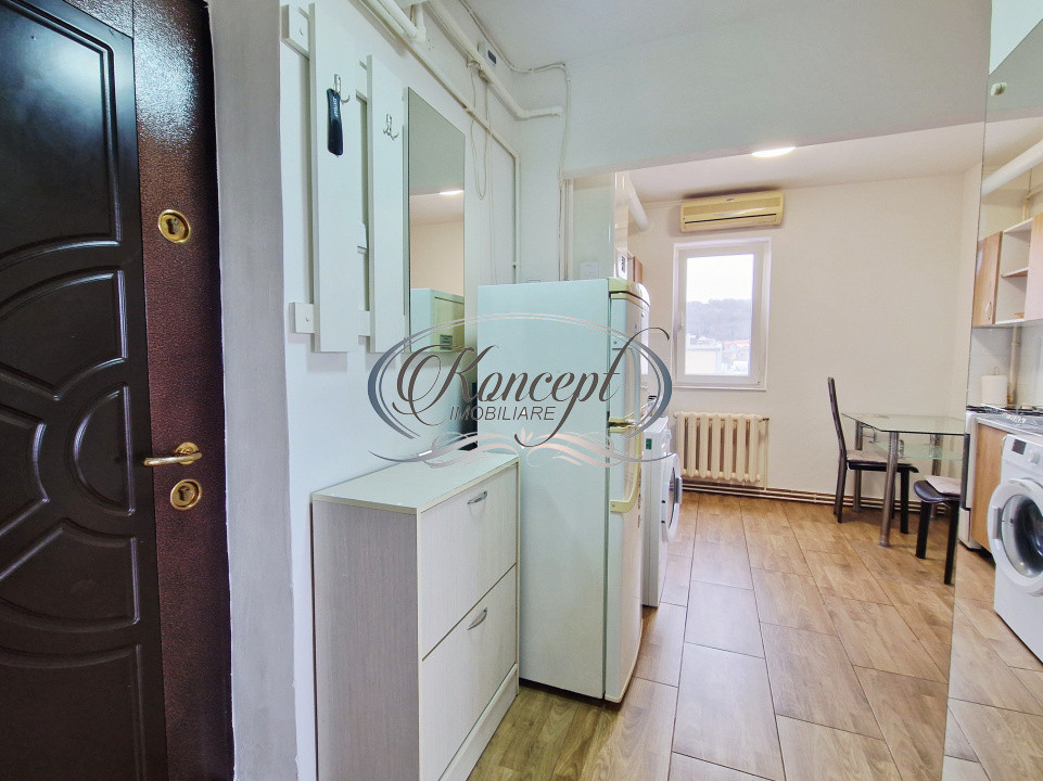 Koncept Imobiliare va ofera spre vanzare un apartament cu 2 camere decomandate, situat in cartierul Dambul Rotund, in apropierea Scolii de Agenti de Politie Septimiu Muresan, o zona apreciata pentru accesibilitate si potential investitional. Apartamentul este amplasat la etajul 4 al unui imobil dispus pe D+P+4E, reabilitat termic, ceea ce asigura un confort termic ridicat si eficienta energetica. Suprafata utila este de 37,5 mp, la care se adauga un balcon de 3,5 mp inchis si integrat in suprafata utila, oferind un plus de spatiu practic si bine valorificat. Compartimentarea este functionala si bine organizata, fiind compusa din hol de intrare, bucatarie deschisa cu loc de servit masa si doua camere decomandate. Balconul inchis extinde zona locuibila si poate fi utilizat ca spatiu de relaxare sau birou. Apartamentul beneficiaza de orientare sud-vestica, ceea ce asigura lumina naturala generoasa pe parcursul zilei si o atmosfera calda si placuta. Este dotat cu centrala termica proprie si incalzire prin calorifere, tamplarie PVC cu geam termopan si usa metalica antiefractie, oferind confort si siguranta. Locuinta se vinde mobilata si utilata, fiind echipata cu aragaz, cuptor cu microunde, frigider, masina de spalat haine, televizor smart si aparat de aer conditionat, fiind pregatita pentru mutare imediata sau pentru inchiriere. Pozitionarea in apropierea Scolii de Agenti de Politie reprezinta un avantaj important, oferind acces rapid catre mijloace de transport, magazine si alte facilitati urbane, dar si un potential bun pentru investitie. Prin compartimentarea decomandata, orientarea sud-vestica, suprafata eficient utilizata si dotarile existente, aceasta proprietate reprezinta o alegere potrivita atat pentru locuinta, cat si pentru investitie, cu randament atractiv pe piata inchirierilor. Pentru informatii suplimentare, programarea unei vizionari sau pentru a afla oferta noastra completa va stam la dispozitie telefonic, prin e-mail sau la sediul agentiei noastre, pe str. Aviator Badescu, nr. 19, Cluj-Napoca.
