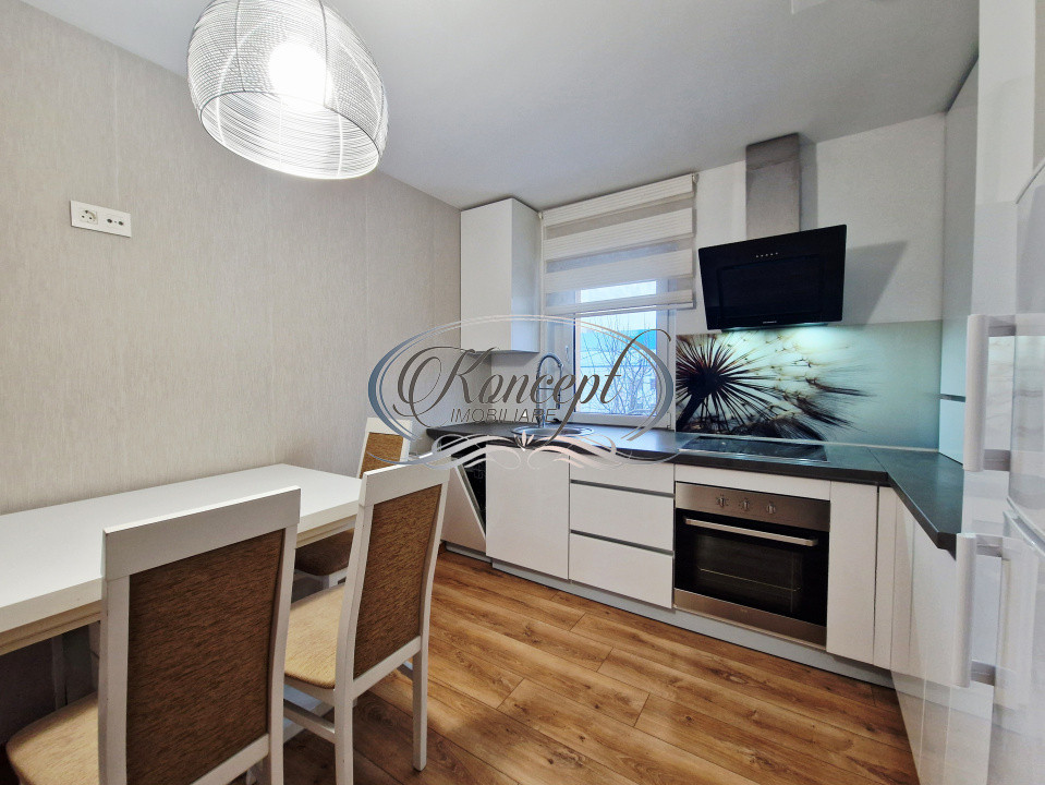 Koncept Imobiliare va ofera spre inchiriere un apartament cu 3 camere semidecomandate, situat in cartierul Manastur, intr-o zona apreciata pentru accesibilitate si echilibru intre viata urbana si confort rezidential, in apropiere de Piata Flora. Proprietatea este amplasata la etajul 2 al unui imobil cu 4 niveluri, reabilitat termic, beneficiind de o orientare Est-Vest care asigura lumina naturala pe tot parcursul zilei si o atmosfera placuta, aerisita si linistita. Apartamentul dispune de o suprafata utila de 68 mp, la care se adauga doua balcoane cu suprafata totala de 8 mp, ambele cu acces din dormitoare. Compartimentarea este functionala si echilibrata, fiind compusa din hol de intrare, bucatarie open space cu loc de servit masa, living generos, doua dormitoare si o baie dotata cu dus. Spatiile sunt bine proportionate si gandite pentru un stil de viata practic si confortabil. Proprietatea se inchiriaza complet mobilata si utilata, fiind dotata cu plita electrica, cuptor electric, hota, frigider, masina de spalat haine, masina de spalat vase, cafetiera si doua televizoare. Finisajele sunt moderne si bine intretinute, cu parchet in camere, gresie si faianta in zonele umede si ferestre cu tamplarie termopan. Confortul termic este asigurat de centrala termica proprie cu incalzire prin calorifere, oferind control eficient al costurilor si temperaturii interioare. Un avantaj important al proprietatii il reprezinta etajul intermediar, lumina naturala, prezenta celor doua balcoane, precum si pozitionarea intr-o zona cu acces rapid la mijloace de transport in comun, magazine, scoli, parcuri si centre comerciale. Parcarea se poate realiza in zona, in functie de disponibilitate. Se accepta animale de companie de talie mica, iar disponibilitatea este imediata. Apartamentul este o alegere potrivita pentru familii, cupluri, expati sau studenti care isi doresc un apartament functional, bine pozitionat si complet echipat. Pentru informatii suplimentare, programarea unei vizionari sau pentru a afla oferta noastra completa va stam la dispozitie telefonic, prin e-mail sau la sediul agentiei noastre, pe str. Aviator Badescu, nr. 19, Cluj-Napoca.