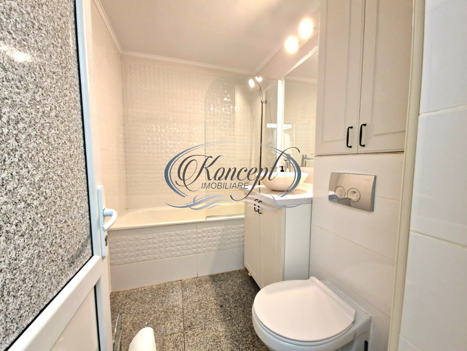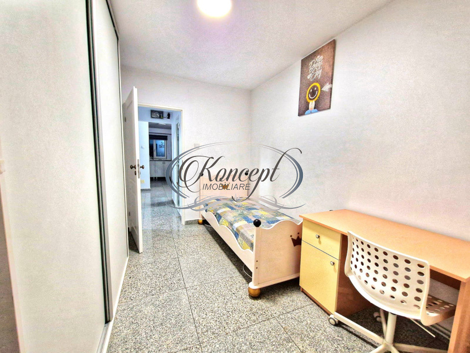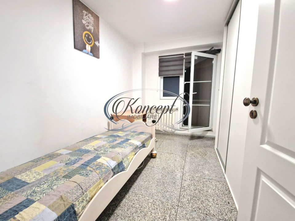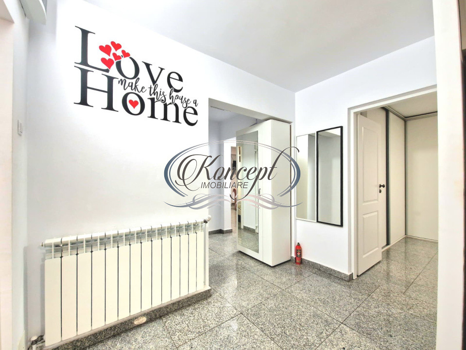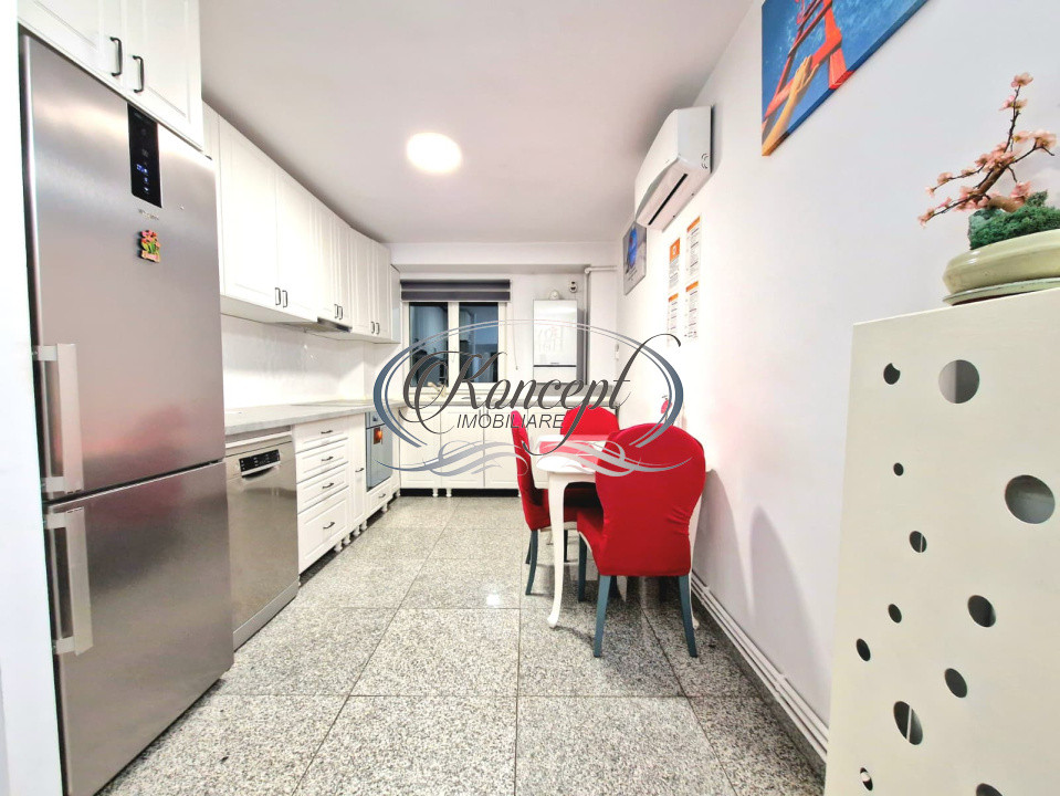 Apartamentul dispune de o suprafata de aproximativ 85 mp utili, compartimentat complet decomandat in trei camere generoase, doua bai functionale, un balcon de 3 mp si un hol larg cu spatiu de depozitare. Bucataria este mobilata si utilata complet, inclusiv cu masina de spalat vase si frigider, iar fiecare camera este pregatita pentru confort maxim, fiind amenajata cu pat matrimonial si multiple zone de depozitare. Finisajele sunt premium, imobilul este izolat exterior si dotat cu tamplarie termopan, ceea ce contribuie la un confort termic si fonic ridicat. Incalzirea se realizeaza prin centrala termica proprie, cu calorifere.