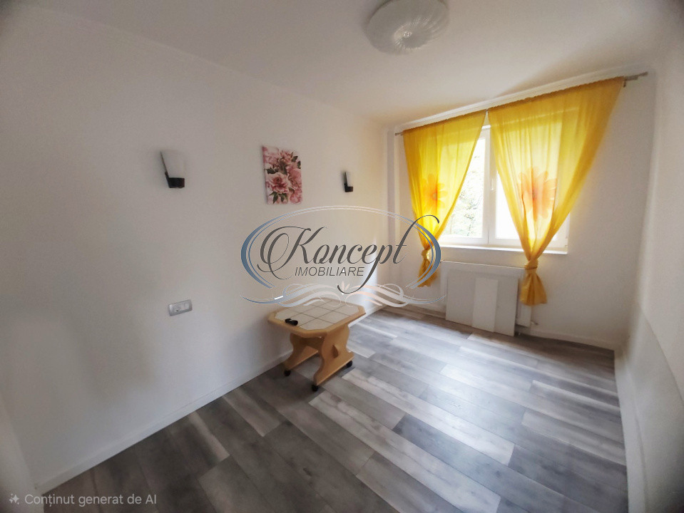 Koncept Imobiliare va ofera spre inchiriere un apartament cu 3 camere semidecomandate, situat intr-una dintre cele mai apreciate zone din Cluj-Napoca, in imediata apropiere a Parcului Central, pe strada Dragalina. Proprietatea este amplasata la etajul 1 al unui imobil reabilitat termic, cu regim de inaltime D+P+4E, intr-un cadru urban linistit, cu acces rapid catre zona centrala, institutii de invatamant, spatii culturale si mijloace de transport in comun. Apartamentul dispune de o suprafata utila de 58 mp, completata de o terasa generoasa de 10 mp, descoperita, cu acces direct din living si o priveliste deschisa catre raul Somes si Parcul Central, un avantaj rar intalnit in aceasta zona. Compartimentarea este functionala si bine gandita, fiind compusa dintr-un living spatios si luminos, bucatarie separata, doua camere, din care una este mobilata si utilata in dormitor, a 2-a urmand sa fie amenajata dupa nevoile viitorilor chiriasi ca dormitor sau birou, baie cu dus si geam pentru aerisire naturala, precum si terasa. Locuinta este orientata Sud-Vest, beneficiind de lumina naturala pe tot parcursul zilei si de o atmosfera calda si primitoare. Apartamentul a fost recent renovat si se afla la prima inchiriere dupa renovare, fiind complet mobilat si utilat cu echipamente noi: frigider, plita electrica, cuptor electric, cuptor cu microunde, masina de spalat vase si masina de spalat haine TV smart. Finisajele sunt moderne si de calitate, incluzand parchet, gresie, faianta si obiecte sanitare atent alese, iar confortul termic este asigurat de centrala proprie cu incalzire prin calorifere. Blocul dispune de interfon si beneficiaza de reabilitare termica, ceea ce se reflecta in costuri de intretinere foarte reduse. Unul dintre punctele forte ale acestei proprietati este pozitionarea excelenta, cu acces pietonal rapid catre Parcul Central, raul Somes, Opera Maghiara, universitati si licee, precum si vizibilitatea si linistea oferite de orientarea si etajul intermediar. Exista posibilitate de parcare in zona. Apartamentul se potriveste foarte bine pentru un cuplu, o familie, expati, studenti sau angajati corporate care isi doresc un stil de viata urban, confortabil si aproape de centrul orasului, intr-o zona verde si reprezentativa. Pentru informatii suplimentare, programarea unei vizionari sau pentru a afla oferta noastra completa va stam la dispozitie telefonic, prin e-mail sau la sediul agentiei noastre, pe str. Aviator Badescu, nr. 19, Cluj-Napoca.