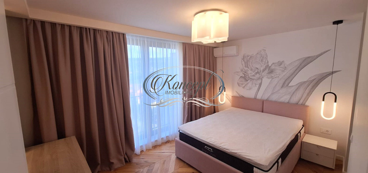 Koncept Imobiliare va ofera spre vanzare un apartament pe doua niveluri, situat pe strada Mihai Romanul, in cartierul Buna Ziua, zona recunoscuta pentru atmosfera linistita, accesul facil catre oras si proximitatea fata de zone verzi. Proprietatea este amplasata la etajele 8 si 9 ale unui imobil nou ce ofera standarde moderne de convietuire. Apartamentul are suprafata utila de 95 mp, la care se adauga o terasa de 14 mp, cu orientare estica si panorama deschisa asupra orasului si zonelor verzi din imprejurimi. Compartimentarea este moderna si functionala, fiind gandita pentru un stil de viata confortabil si echilibrat. La primul nivel se afla livingul spatios open space, integrat cu bucataria complet echipata si zona de servit masa, o baie de serviciu si accesul catre terasa. Nivelul superior este dedicat zonei de noapte si cuprinde doua dormitoare matrimoniale, fiecare cu baie proprie, unul dintre acestea beneficiind si de dressing, asigurand intimitate si confort maxim. Proprietatea se preda complet mobilata si utilata, cu finisaje premium atent alese, bucatarie complet echipata cu electrocasnice incluse si dotari moderne. Confortul termic este asigurat de centrala termica proprie cu sistem de incalzire prin pardoseala, completata de aparate de aer conditionat prezente in fiecare camera, oferind un climat optim pe tot parcursul anului. Este disponibila si o parcare in curtea imobilului cu acces securizat la pretul de 10.000 euro. Compartimentarea pe doua niveluri, cele trei bai, terasa spatioasa si orientarea favorabila transforma aceasta proprietate intr-o locuinta ideala pentru o familie care isi doreste un spatiu generos si bine organizat sau pentru o locuinta de protocol, cu un nivel ridicat de confort si reprezentativitate. Pentru informatii suplimentare, programarea unei vizionari sau pentru a afla oferta noastra completa va stam la dispozitie telefonic, prin e-mail sau la sediul agentiei noastre, pe str. Aviator Badescu, nr. 19, Cluj-Napoca.