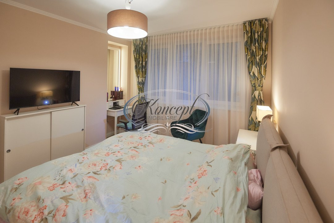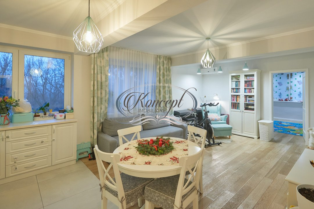 Koncept Imobiliare va ofera spre vanzare un apartament renovat complet, situat la etajul 1 al unui imobil reabilitat termic, retras de la strada principala. Imobilul, in suprafata utila de 80 mp este compartimentat intr-un living de tip open space cu zona de bucatarie si de luat masa, 2 dormitoare, 2 bai si 2 dressinguri. Totodata exista un spatiu de depozitare suplimentar de 11 mp aflat langa apartament, 1 boxa de 5 mp la subsolul imobilului si un garaj aflat in curtea blocului. Apartamentul a fost renovat in totalitate in anul 2019 cand a fost regandita compartimentarea, s-au refacut instalatiile electrice, termice si sanitare, a fost montata incalzirea prin pardoseala si s-a finisat in intregime. La renovarea efectiva s-au folosit materiale de constructie premium, calitati ce se fac simtite prin costurile mici de intretinere, prin designul deosebit, aspectul exterior, dar si compartimentarea gandita pana la cel mai mic detaliu. Finisajele interioare sunt de exceptie, totul fiind customizat pana la cel mai mic detaliu. Exista piese de mobilier din lemn masiv si MDF si electrocasnice noi in garantie. Mai mult decat atat, pentru un confort suplimenatar, exista sisteme de climatizare suplimentare iar pentru siguranta suplimentara este montat si un sistem de alarma cu senzori de miscare. zona in care se afla este inchisa urbanistic, blocul fiind situat in parcul UBB si cu acces separat pietonal catre Muzeul Zoologic UBB, str. Clinicilor si facultatea de Geografie, iar zona foarte bine cotata face posibila deplasarea facila catre orice punct de interes al orasului atat pietonal cat si cu mijloace de transport sau autoturism personal.