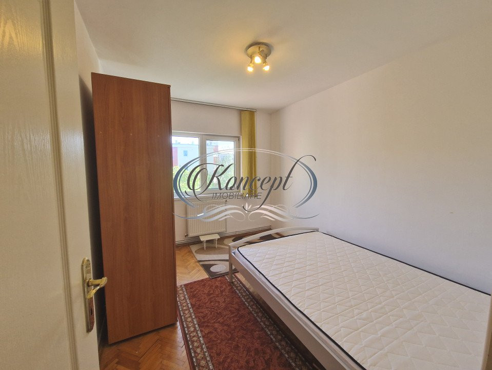 Koncept Imobiliare va ofera spre inchiriere un apartament cu 4 camere decomandate pe strada Gorunului, cartier Marasti. Apartamentul in suprafata utila de 78 mp este retras de la strada principala, fiind situat la etajul 3 intr-un imobil cu 4 etaje reabilitat termic si este compartimentat astfel: hol la intrare, bucatarie cu loc de luat masa, 3 dormitoare, un living, 2 bai si 2 balcoane. Acest apartament dispune de centrala termica proprie, masina de spalat vase, cuptor electric, cuptor cu microunde si se inchiriaza complet mobilat si utilat. Datorita spatiului util generos si compartimentarii sale, se recomanda acest apartament atat pentru o familie cu copii cat si pentru 3 persoane care doresc sa beneficieze de spatiu. In pret este inclus si un loc de parcare exterior. Pentru detalii complete, pentru programarea unei vizionari sau pentru a afla oferta noastra completa nu ezitati sa ne contactati telefonic, prin e-mail sau la sediul agentiei noastre, pe str. Aviator Badescu nr. 19, Cluj-Napoca.