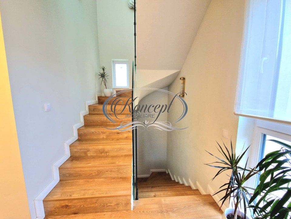 Koncept Imobiliare ofera spre inchiriere o casa individuala situata in cartierul Andrei Muresanu, una dintre cele mai apreciate si exclusiviste zone ale Clujului. Proprietatea este amplasata intr-o zona retrasa si verde, dar cu acces facil catre centrul orasului si principalele artere rutiere, oferind un echilibru ideal intre liniste si conectivitate urbana. Casa este dispusa pe doua niveluri si beneficiaza de o suprafata utila de 150 mp, amplasata pe un teren de 300 mp. Compartimentarea eficienta cuprinde 4 camere, 3 bai, bucatarie, hol, un birou separat, doua balcoane si o terasa generoasa de 100 mp. Spatiul este completat de un garaj si o curte proprie pavata, ideala pentru utilizare zilnica. Finisajele sunt de lux, iar imobilul este complet mobilat, oferind un ambient elegant si functional. Incalzirea se realizeaza prin centrala termica, iar orientarea multipla nord-sud asigura luminozitate si confort pe tot parcursul zilei. Proprietatea este pet friendly, o optiune rara si cautata in zona Andrei Muresanu. Casa este recomandata pentru o familie care doreste un camin stabil si bine localizat. Nu permite recompartimentari, dar actuala dispunere ofera un grad ridicat de flexibilitate in utilizare. Pentru informatii complete, programarea unei vizionari sau pentru a afla oferta noastra completa va stam la dispozitie telefonic, prin e-mail sau la sediul agentiei noastre, pe str. Aviator Badescu, nr. 19, Cluj-Napoca.