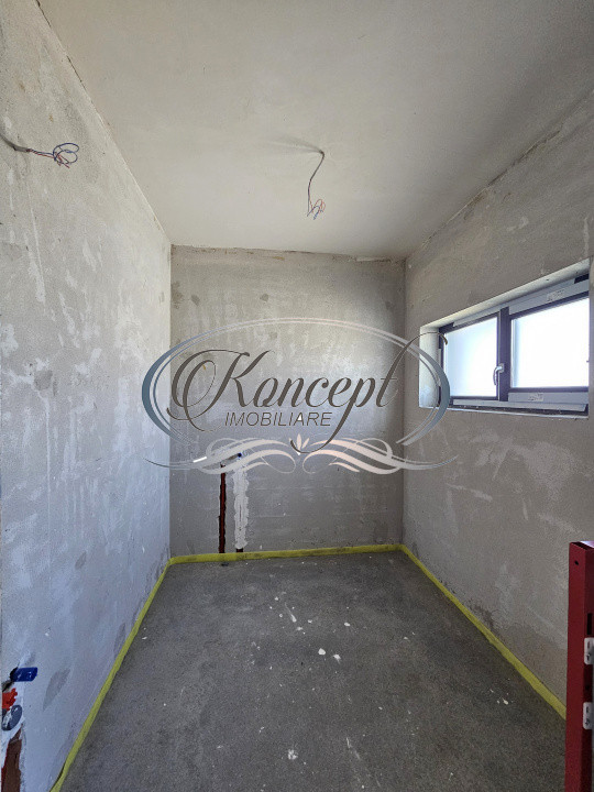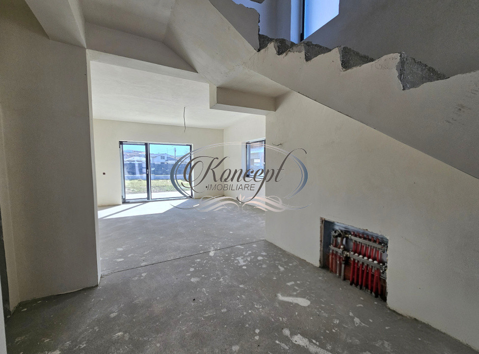 Koncept Imobiliare va ofera spre vanzare o casa individuala situata in Dezmir, intr-un ansamblu rezidential compus din 9 unitati locative, amplasat intr-o zona aerisita si retrasa de la traficul intens, unde predomină linistea, intimitatea si cadrul rezidential modern. Proprietatea beneficiaza de acces pe strada privata pietruita si se afla intr-un cadru ideal pentru cei care isi doresc confortul unei locuinte moderne, dar si proximitatea orasului Cluj-Napoca. Casa are o suprafata utila de 120 mp si este amplasata pe un teren de 470 mp, din care aproximativ 316 mp reprezinta curte libera, perfect plana si usor de amenajat. In plus, proprietatea dispune de trei terase care insumeaza aproximativ 45 mp, o parcare acoperita de 20 mp ce poate fi transformata ulterior intr-un garaj inchis, precum si un loc suplimentar de parcare in curte. Locuinta este dispusa pe doua niveluri, respectiv parter si etaj. La parter regasim holul de acces, un living generos cu bucatarie open space, compartimentare ce permite si inchiderea bucatariei pentru cei care prefera o zona separata, o baie cu geam si o terasa de aproximativ 25 mp cu acces direct din living si bucatarie. Etajul este compus din trei dormitoare si doua bai, dintre care dormitorul matrimonial dispune de baie proprie, dressing si acces la o terasa de 10 mp. Al doilea dormitor beneficiaza de terasa proprie de aproximativ 10 mp, iar cel de-al treilea dormitor poate fi amenajat ca dormitor pentru copii, birou sau camera de oaspeti. Imobilul se preda la stadiul de semifinisat la interior, cu sapa turnata, pereti gletuiti, instalatii electrice si sanitare trase pe pozitii, centrala termica proprie pe gaz montata si sistem de incalzire prin pardoseala. Tamplaria este din PVC cu geam tripan, iar ferestrele generoase permit patrunderea abundenta a luminii naturale. Exteriorul este complet finalizat, cu izolatie de 15 cm, fatada placata cu caramida aparenta premium, alei pietonale si auto pavate, beton perimetral si curte amenajata. Terenul este imprejmuit cu gard din beton si lemn, iar accesul se face prin porti metalice auto si pietonale cu elemente compozite. Proprietatea este racordata la gaz, apa si curent, iar pana la realizarea retelei de canalizare se utilizeaza fosa septica. Un element distinctiv al locuintei este designul cubic cu acoperis tip terasa, un stil arhitectural contemporan caracterizat prin linii simple, volumetrie clara si suprafete vitrate ample. Acest tip de arhitectura pune accent pe luminozitate, functionalitate si integrarea armonioasa a spatiilor interioare cu zonele de terasa si curte. In cadrul ansamblului exista atat case finalizate, cat si unitati aflate in constructie, ceea ce ofera posibilitatea alegerii variantei potrivite in functie de preferinte. In cazul locuintelor aflate in executie, exista inclusiv optiunea de personalizare a instalatiilor electrice si a unor detalii interioare. Finalizarea unitatilor aflate in constructie este estimata in cursul anului 2026, iar achizitia se poate realiza inclusiv prin credit bancar, pretul afisat incluzand TVA. Proprietatea este ideala pentru familii care isi doresc o locuinta moderna cu teren generos, pentru persoane care cauta linistea unei zone rezidentiale aerisite in apropierea orasului sau pentru cumparatori interesati de o casa noua ce poate fi personalizata in functie de propriul stil de viata. Pentru informatii suplimentare, programarea unei vizionari sau pentru a afla oferta noastra completa va stam la dispozitie telefonic, prin e-mail sau la sediul agentiei noastre, pe str. Aviator Badescu, nr. 19, Cluj-Napoca.