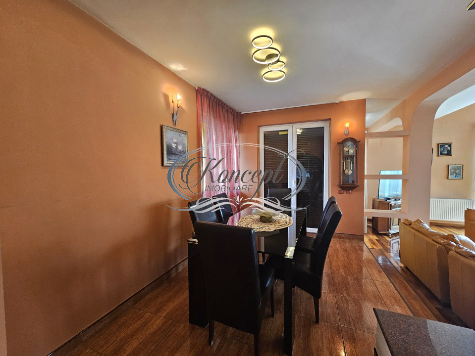 Koncept Imobiliare va ofera spre vanzare o casa individuala situata in cartierul Europa, pe o strada linistita si complet asfaltata, retrasa de la traficul intens, cu acces facil la arterele principale si mijloacele de transport. Zona este ideala pentru familii care cauta confort, intimitate si proximitate fata de facilitatile urbane, intr-un cadru sigur si primitor. Casa, construita in anul 2005 din caramida, dispune de o suprafata utila de 190 mp si este amplasata pe un teren generos de 675 mp, cu front la doua strazi, complet imprejmuit si cu gradina amenajata, oferind un peisaj placut si functional, inclusiv o zona destinata gratarului. Compartimentarea este gandita pentru confort si functionalitate: demisolul cuprinde o camera cu semineu, ideala pentru birou sau relaxare, si o camera tehnica cu spatii de depozitare; parterul include living generos si luminos, hol, baie, bucatarie inchisa cu zona de luat masa, casa scarii si terasa acoperita de aproximativ 10 mp; etajul dispune de doua dormitoare, un dressing walk-in, baie spatioasa, hol si terasa descoperita de 10 mp, cu iesire din dormitorul matrimonial. Casa se vinde complet mobilata si utilata, fiind imediat disponibila. Curtea permite parcare pentru trei masini, iar orientarea sud-vest asigura luminozitate pe intreaga zi. Atmosfera generala este calda, primitoare si spatioasa, cu finisaje in stare buna si centrala proprie pe gaz cu calorifere. Proprietatea ofera multiple posibilitati de modificare sau extindere, inclusiv garaj, adaptandu-se usor nevoilor viitorilor proprietari. Printre punctele forte se numara pozitia retrasa pe o strada linistita, terenul cu front la doua strazi, curtea generoasa si gradina amenajata complet, terasele acoperite si descoperite, spatiile interioare bine compartimentate si solida constructie din caramida. Aceasta casa reprezinta alegerea ideala pentru o familie care cauta confort, functionalitate si intimitate intr-o zona selecta, cu acces facil la facilitati urbane si mijloace de transport. Pentru informatii suplimentare, programarea unei vizionari sau pentru a afla oferta noastra completa va stam la dispozitie telefonic, prin e-mail sau la sediul agentiei noastre, pe str. Aviator Badescu, nr. 19, Cluj-Napoca.