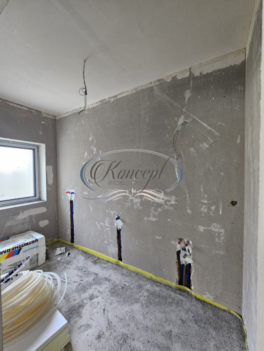 Koncept Imobiliare ofera spre vanzare o casa individuala in Popesti Deal, pozitionata intr-o zona retrasa, aproape de padure si de Biserica Sfanta Treime. Ansamblul format din 3 locuinte asigura intimitate si un cadru de viata linistit, departe de agitatia urbana, dar cu acces rapid catre principalele puncte de interes din imprejurimi. Casa este dispusa pe un singur nivel, cu suprafata utila de 120 mp si teren aferent de 600 mp. Compartimentarea eficienta cuprinde 4 camere luminoase, 2 bai, dressing, spatiu tehnic, bucatarie si hol, alaturi de doua terase generoase de 14 mp si 11 mp. Exista posibilitatea de recompartimentare, adaptand interiorul in functie de nevoile viitorului proprietar. Constructia impresioneaza prin arhitectura mediteraneana si finisaje moderne, de exceptie. Sistemul de incalzire este compus din centrala proprie si incalzire prin pardoseala, asigurand confort sporit pe tot parcursul anului. Exteriorul este complet amenajat cu gard, poarta, pavaj si acoperis Bilka, iar tamplaria Salamander cu trei foi de sticla si banda anti-vapori garanteaza eficienta energetica ridicata. Proprietatea este recomandata ca locuinta de familie, beneficiind de pod spatios pentru depozitare si parcare pentru doua autoturisme. Atmosfera intima si spatiile bine gandite transforma aceasta casa intr-o alegere de durata pentru cei care apreciaza echilibrul dintre confort si natura. Pentru informatii complete, programarea unei vizionari sau pentru a afla oferta noastra completa va stam la dispozitie telefonic, prin e-mail sau la sediul agentiei noastre, pe str. Aviator Badescu, nr. 19, Cluj-Napoca.