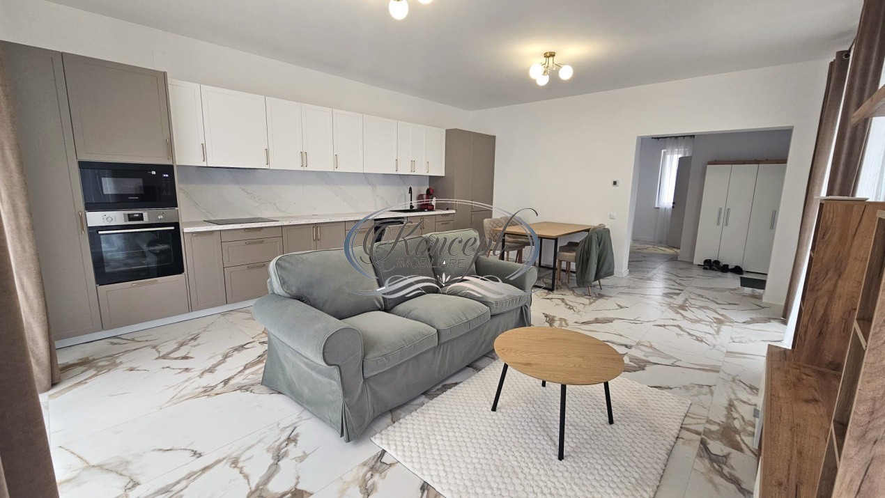 Koncept Imobiliare va ofera spre inchiriere un duplex modern, situat in cartierul Iris, strada Oasului, intr-o zona exclusiv de case noi, linistita si aerisita, la marginea padurii, cu acces facil catre statii de transport si puncte comerciale. Proprietatea beneficiaza de lumina naturala generoasa pe parcursul dupa-amiezii si serii, oferind un ambient placut si relaxant. Avand suprafata utila de 142 mp, din care 35 mp reprezinta mansarda si este compartimentata eficient astfel: la parter regasim un living open-space cu zona de dining si bucataria complet mobilata si utilata(plita cu inductie, cuptor electric, cuptor cu microunde, frigider si masina de spalat vase), baie si terasa cu acces din living; la etaj sunt 3 dormitoare, dintre care unul dispune de dressing, si 2 bai complet echipate (ambele cu geam pentru ventilatie naturala); mansarda este open-space, ideala pentru birou, zona de relaxare sau hobby. Proprietatea dispune de o curte proprie de aproximativ 160 mp, amenajata cu gazon si zona pavata pentru terasa si parcare, precum si 2 locuri de parcare. Finisajele sunt moderne, cu accent pe confort si functionalitate. Este dotata cu centrala proprie si incalzire in pardoseala, cu termostate individuale in fiecare incapere, aer conditionat in toate camerele. Unul dintre principalele avantaje ale proprietatii este pozitionarea la marginea padurii, oferind un echilibru ideal intre accesibilitate urbana si linistea naturii, alaturi de faptul ca este la prima inchiriere totul fiind nou, mansarda functionala si curtea privata. De asemenea, zona rezidentiala nou dezvoltata asigura un mediu sigur si aerisit, potrivit unui stil de viata modern. Proprietatea este ideala atat pentru o familie sau un cuplu care isi doreste confort, spatiu si liniste, cat si pentru firme cu activitate de birou, precum IT, consultanta sau servicii, datorita compartimentarii si spatiului suplimentar oferit de mansarda. Pentru informatii suplimentare, programarea unei vizionari sau pentru a afla oferta noastra completa va stam la dispozitie telefonic, prin e-mail sau la sediul agentiei noastre, pe str. Aviator Badescu, nr. 19, Cluj-Napoca.
