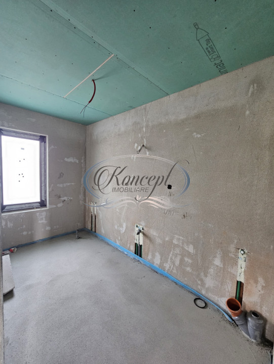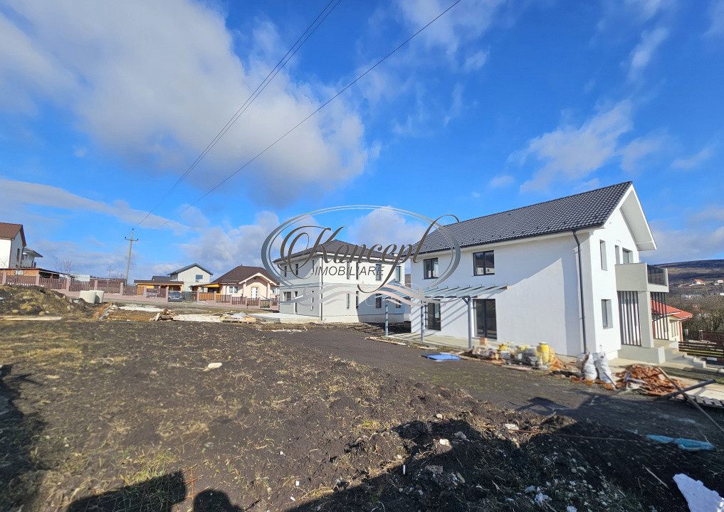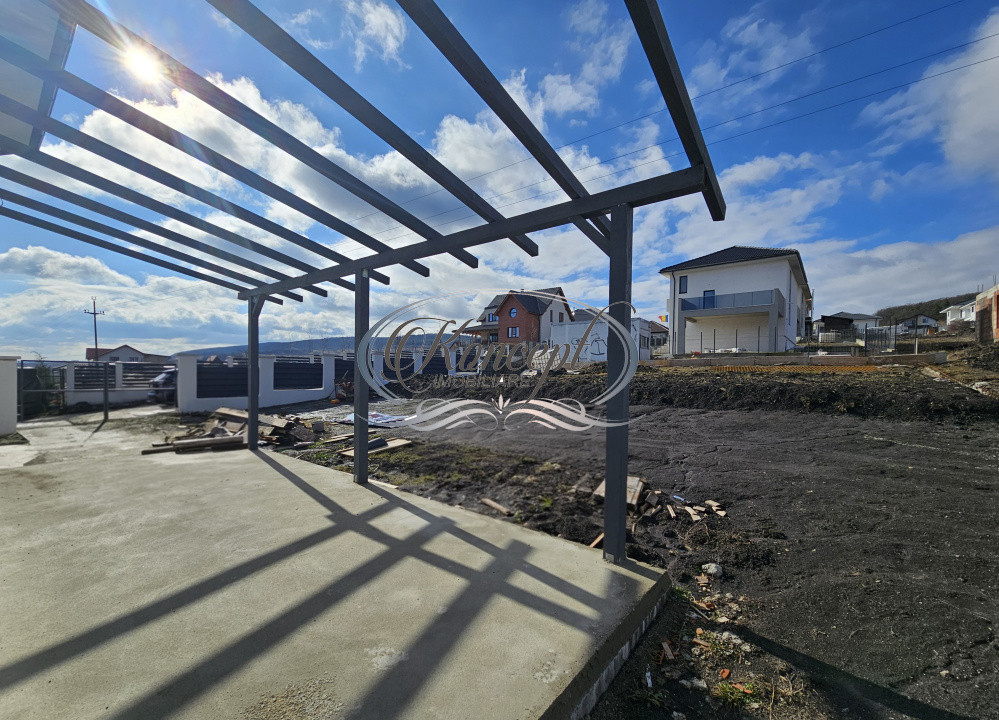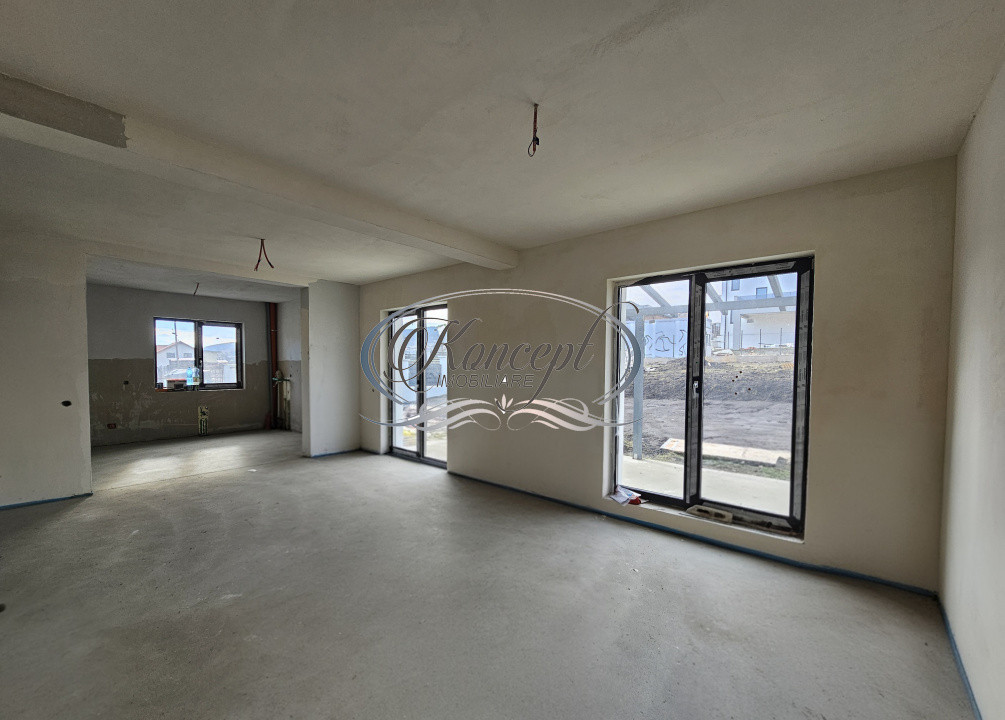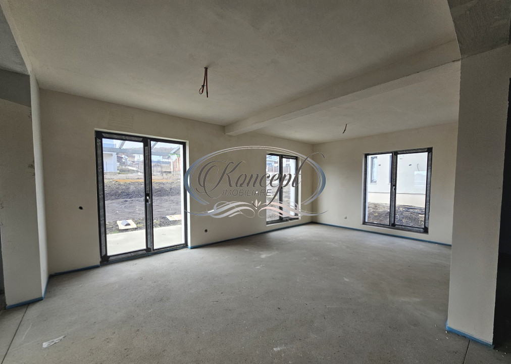 Koncept Imobiliare va ofera spre vanzare casa individuala situata in Chinteni, pe strada Ion Luca Caragiale, intr-o zona nou dezvoltata, preponderent de case individuale si duplexuri, cu acces asfaltat si iluminat public in apropiere. Proprietatea beneficiaza de orientare Sud-Est, oferind lumina naturala pe parcursul intregii zile si un ambient placut, ideal pentru confortul unei familii. Casa este edificata in anul 2025, are Carte Funciara si este disponibila imediat. Este amplasata pe un teren generos de 700 mp, nivelat si imprejmuit, cu porti de acces auto si pietonal, precum si acces betonat in curte. Suprafata utila este de 120 mp, compartimentarea fiind practica si bine gandita pentru viata de zi cu zi. La parter regasim hol de acces, living spatios cu iesire directa pe terasa acoperita de 10 mp, bucatarie separata, o camera ce poate fi utilizata ca birou sau dormitor si o baie. Etajul este compus din hol, un dormitor matrimonial cu dressing walk-in, un dormitor cu baie proprie si balcon de 4 mp, un al treilea dormitor si inca o baie cu acces din hol. In plus, exista acces in pod, oferind un spatiu suplimentar pentru depozitare. Locuinta se preda la stadiul semifinisat, cu instalatiile electrice si sanitare trase pe pozitii, sapa autonivelanta, pereti tencuiti si finisati cu doua straturi de glet, ferestre PVC cu trei foi de sticla si incalzire prin pardoseala cu centrala termica proprie pe gaz. Constructia este realizata pe structura din beton si caramida, izolata eficient cu polistiren si vata minerala la nivelul podului, asigurand un bun confort termic. Printre avantajele acestei case din Chinteni se remarca terenul generos, compartimentarea echilibrata cu trei bai, orientarea favorabila, posibilitatea parcarii a doua autoturisme in curte si faptul ca se vinde de pe persoana fizica, fara implicare de TVA. Proprietatea este eligibila pentru achizitie prin credit. Aceasta casa individuala din Chinteni este potrivita pentru o familie cu copii sau pentru un cuplu tanar care isi doreste un camin nou, intr-o zona rezidentiala aerisita, cu intimitate si spatiu exterior generos. Pentru informatii suplimentare, programarea unei vizionari sau pentru a afla oferta noastra completa va stam la dispozitie telefonic, prin e-mail sau la sediul agentiei noastre, pe str. Aviator Badescu, nr. 19, Cluj-Napoca.