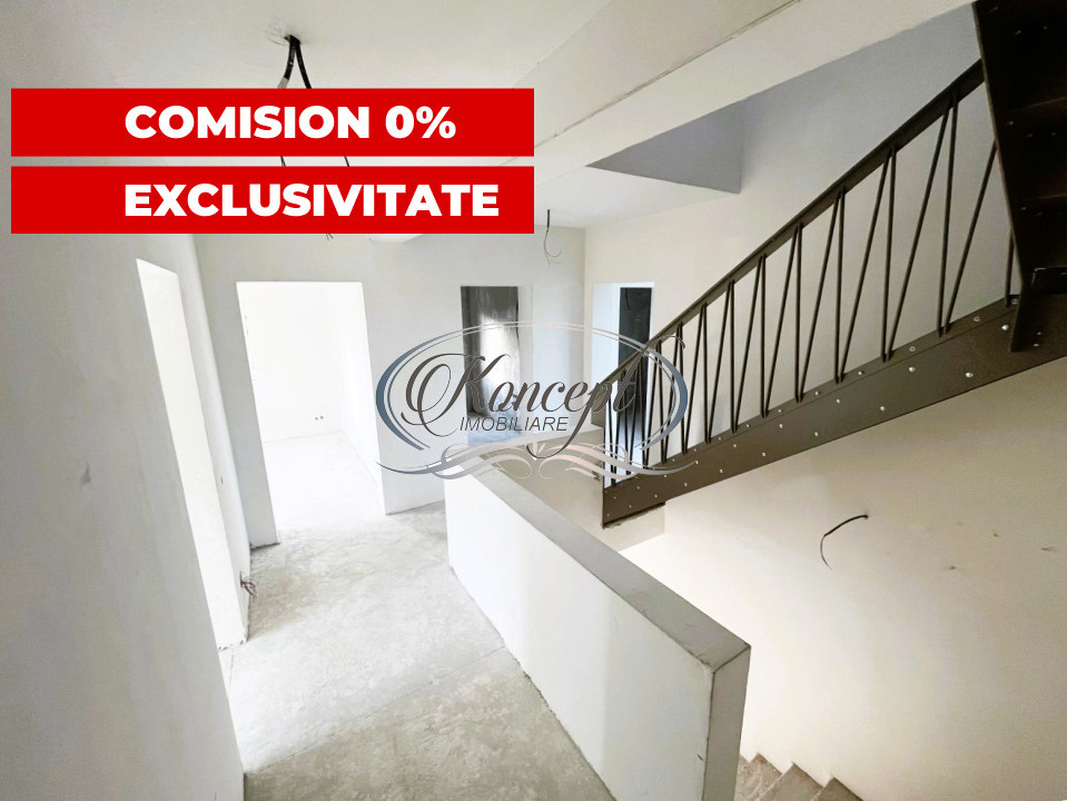 Koncept Imobiliare va ofera spre vanzare o casa tip duplex situata in Feleacu, foarte aproape de partia de schi, pe ultima parcela dintr-o zona de case noi premium. Proprietatea beneficiaza de o orientare est sud vest, astfel incat livingul si terasa se bucura de lumina naturala pe tot parcursul zilei si de o vedere panoramica neobstructionata spre orasul Cluj-Napoca si spre partia de schi. Fiecare unitate locativa dispune de un teren generos de aproximativ 405 de metri patrati, iar casa are o suprafata utila de aproximativ 180 metri patrati, care cuprinde si un pod de aproximativ 60 de metri patrati, usor amenajabil. La parter regasim un living spatios cu bucatarie open space si iesire directa pe terasa si in curte, o baie, camera tehnica, casa scarii si hol. Etajul este gandit pentru zona de noapte, cu dormitor matrimonial cu baie proprie si balcon cu panorama spre oras, doua dormitoare luminoase, o baie, terasa, casa scarii si hol. Podul tip open space, cu ferestre de tip velux, poate fi compartimentat in doua dormitoare cu baie si dressing sau poate deveni un spatiu generos pentru birou, loc de joaca ori biblioteca. Casa se preda la interior la stadiul de semifinisat, cu sapa egalizatoare, pereti cu doua maini de glet, toate instalatiile trase pe pozitii si usa de intrare antiefractie. Sistemul de incalzire este asigurat de o centrala termica proprie marca Viessmann, cu incalzire in pardoseala. Tamplaria este Rehau Synego, instalatiile de apa si de canalizare sunt antifonate iar exteriorul este finalizat complet, in stil neoromanesc contemporan, cu termosistem, tencuiala decorativa, glafuri si trotuare perimetrale, acoperis din tigla si detalii executate atent, cu materiale de foarte buna calitate. Curtea este imprejmuita, accesul se face prin poarta automatizata cu telecomanda, exista doua locuri de parcare pavate pentru fiecare unitate, iar zona din spate este amenajata cu gazon si spatiu liber pentru viitoarea terasa, loc de joaca sau zona de relaxare. Proprietatea dispune de gaz, energie electrica, apa de la retea, fibra optica pentru internet, micro statie de epurare pentru cele doua unitati locative, sistem de alarma, supraveghere video si retea pregatita pentru montarea de panouri fotovoltaice. Accesul se face pe doua drumuri, cu asfalt pana in imediata apropiere, ultimul tronson de aproximativ 150 de metri fiind neasfaltat, iar la drumul asfaltat exista statie pentru transportul in comun. Aceasta casa tip duplex din Feleacu este o alegere potrivita pentru familii cu copii, pentru cei care lucreaza de acasa sau pentru iubitorii de natura si sport, care isi doresc liniste, aer curat, intimitate si o panorama spectaculoasa spre Cluj-Napoca, pastrand totodata accesul facil catre oras. Proprietatea este finalizata, are carte funciara, se poate preda imediat, iar in pretul afisat este inclusa si taxa pe valoare adaugata, vanzatorul fiind persoana juridica. Pentru informatii suplimentare, programarea unei vizionari sau pentru a afla oferta noastra completa va stam la dispozitie telefonic, prin e-mail sau la sediul agentiei noastre, pe str. Aviator Badescu, nr. 19, Cluj-Napoca.