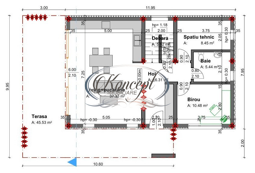 Koncept Imobiliare va ofera spre vanzare o casa individuala situata in partea de vest a localitatii Salicea, intr-o zona rezidentiala apreciata pentru peisajele deschise, liniste si intimitate, cu priveliste deosebita asupra imprejurimilor. Construita pe un teren de 750 mp, cu front de 35 metri, este structurata pe doua niveluri P+E, cu suprafata utila de 144 mp. In plus, proprietatea beneficiaza de o terasa de 45,5 mp, ideala pentru relaxare si petrecerea timpului in aer liber. Compartimentarea este moderna si functionala: la parter se regasesc livingul open space cu bucataria si zona de servit masa, un birou, o camera tehnica si baie. Etajul este destinat zonei de noapte si include dormitorul matrimonial cu dressing si baie proprie, inca doua dormitoare, o baie si un dressing separat. Constructia este realizata din caramida, iar casa se afla in prezent la stadiul de rosu, urmand a fi predata finisata la exterior si semifinisata la interior, cu termen estimat de finalizare in vara anului 2026. Viitorul proprietar va avea posibilitatea de a-si personaliza finisajele interioare in functie de propriile preferinte. Sistemul de incalzire este unul modern si eficient, prin pardoseala, cu pompa de caldura, oferind confort termic ridicat si costuri reduse de exploatare. Accesul se face pe drum public, existand o portiune care urmeaza a fi asfaltata. Curtea permite amenajarea a cel putin patru locuri de parcare, gradina si spatii verzi, zona oferind un nivel bun de intimitate fata de vecinatati. Printre avantajele principale se numara suprafata generoasa a terenului, terasa ampla, compartimentarea eficienta, sistemul de incalzire cu pompa de caldura, privelistea deosebita si pozitionarea intr-o zona frumoasa din Salicea, cu pret competitiv raportat la piata actuala. Pentru informatii suplimentare, programarea unei vizionari sau pentru a afla oferta noastra completa va stam la dispozitie telefonic, prin e-mail sau la sediul agentiei noastre, pe str. Aviator Badescu, nr. 19, Cluj-Napoca.