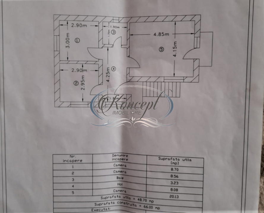 Koncept Imobiliare va ofera spre vanzare o casa individuala situata in cartierul Someseni, intr-o zona accesibila, cu trafic mediu, pe strada asfaltata, avand acces facil catre punctele de interes din cartier. Proprietatea beneficiaza de orientare sud-est, oferind luminozitate naturala pe parcursul zilei, si este amplasata pe un teren de 427 mp, cu front stradal generos de aproximativ 20 metri si forma triunghiulara. Imobilul este edificat in anul 1999 si este compus din doua corpuri distincte, lipite intre ele. Corpul principal are o suprafata utila de 98 mp si este structurat pe demisol la nivelul solului si parter inalt, accesul intre niveluri realizandu-se prin scara exterioara. Demisolul cuprinde un hol de acces, o bucatarie spatioasa, o camera si o camara, oferind posibilitati multiple de utilizare, inclusiv zona de zi sau spatii auxiliare. Parterul inalt este compartimentat in hol, trei dormitoare, o baie si un balcon. Al doilea corp, realizat din structura metalica usoara si lipit de casa, are o suprafata utila de 66.5 mp si este compartimentat intr-un garaj generos si o camera tehnica, adaugand un plus de functionalitate si spatiu de depozitare sau lucru. Constructia este realizata din caramida si beton, cu acoperis din tigla. Finisajele existente sunt uzate, proprietatea necesitand renovare, aspect care permite viitorului proprietar sa personalizeze spatiul in functie de propriile nevoi si preferinte. Casa se vinde mobilata si utilata, fiind dotata cu centrala termica proprie pe lemne si sistem de incalzire prin calorifere. Proprietatea este racordata la toate utilitatile, cu exceptia gazului, care este disponibil la strada si se poate racorda. Curtea este libera, neamenajata, oferind potential pentru amenajarea unei zone verzi, spatiu de relaxare sau extindere. In proximitate se regasesc scoli, magazine si mijloace de transport in comun, ceea ce face ca zona Someseni sa fie potrivita atat pentru locuire permanenta, cat si pentru investitie sau activitati mixte rezidentiale si de birou. Aceasta proprietate se adreseaza in special unei familii care isi doreste o casa individuala cu teren in Someseni, dar reprezinta si o oportunitate buna pentru investitori, avand potential de reamenajare, inchiriere sau conversie pentru activitati mixte. Pentru informatii suplimentare, programarea unei vizionari sau pentru a afla oferta noastra completa va stam la dispozitie telefonic, prin e-mail sau la sediul agentiei noastre, pe str. Aviator Badescu, nr. 19, Cluj-Napoca.