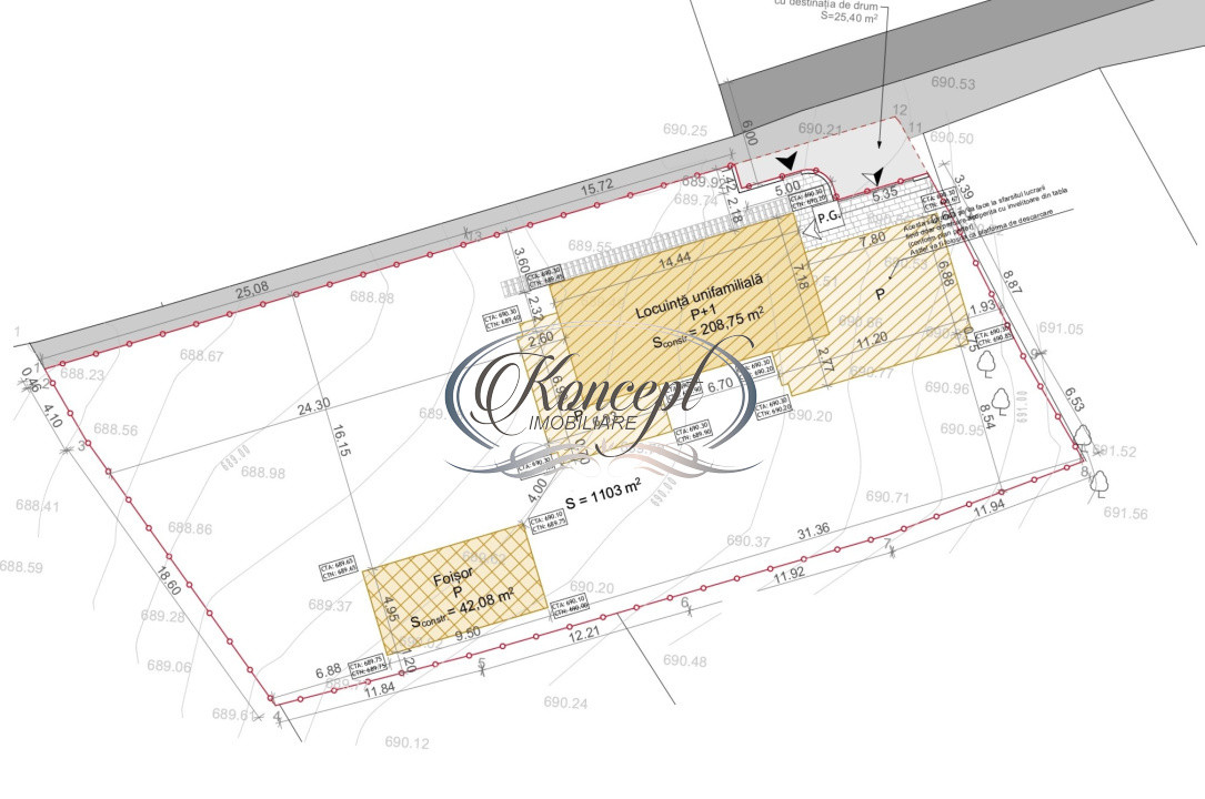 - Front stradal:25.00 m