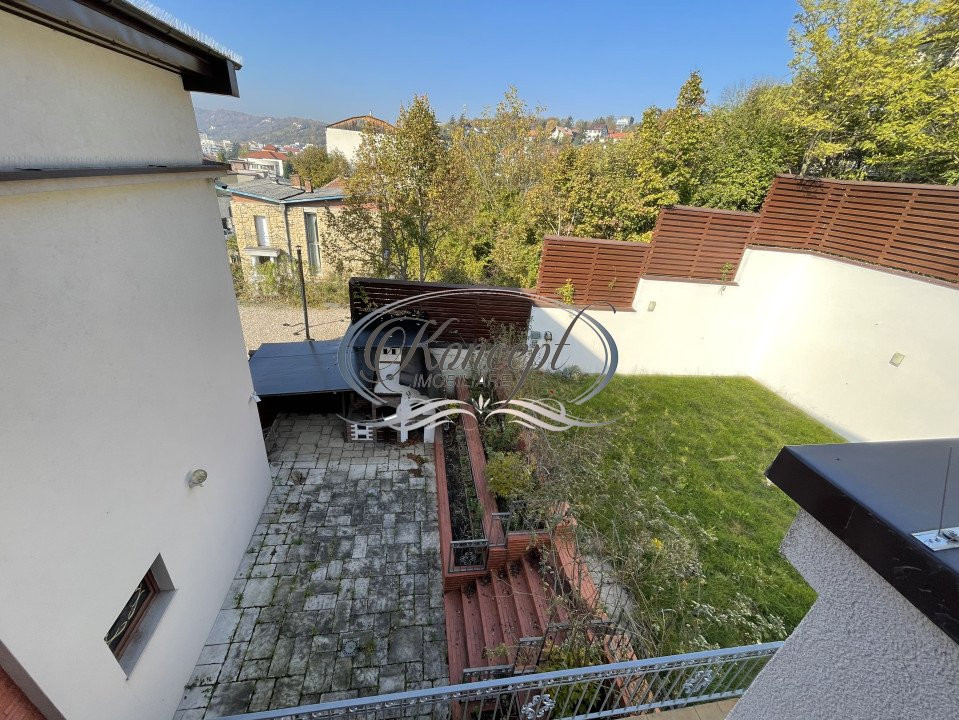 Koncept Imobiliare va ofera spre inchiriere o casa exclusivista pentru activitati de birouri, situata in cartierul Gruia, la doar cateva minute de centrul orasului. Casa, in suprafata utila de 500 mp, este dispusa pe 4 niveluri (D+P+E+ER) si este compartimentata astfel: Demisol - 3 camere, chicineta, grup sanitar, spatiu tehnic, spatiu depozitare, garaj si casa scarii; Parter - 3 camere, baie, bucatarie, debara; Etaj - 2 camere, baie, terasa, dormitor matrimonial cu baie si dressing walk-in si acces pe terasa; Etaj Retras - 2 camere cu acces pe terasa panoramica de 40 mp. Casa dispune de finisaje de exceptie si este dotata cu 2 centrale termice, aer conditionat, acces securizat, sistem antiefractie, videointerfon, automatizare porti si dispune de cca. 4 locuri de parcare. Datoria zonei si compartimentarii, casa se preteaza perfect pentru un cabinet de avocatura, birou notarial sau alte activitati de birouri. Pentru detalii complete, pentru programarea unei vizionari sau pentru a afla oferta noastra completa nu ezitati sa ne contactati telefonic, prin e-mail sau la sediul agentiei noastre, pe str. Aviator Badescu nr. 19, Cluj Napoca.