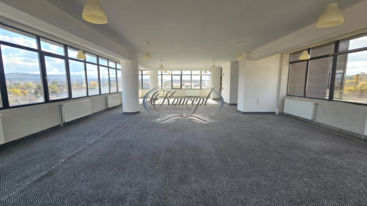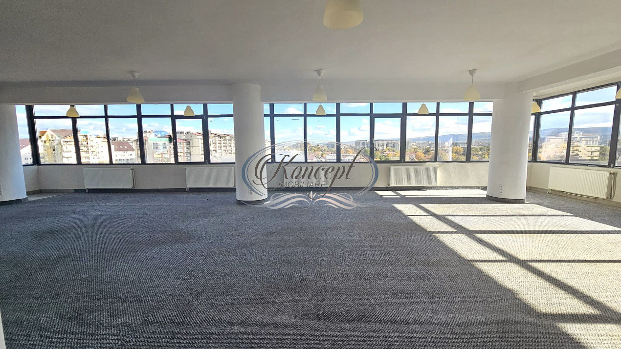 Koncept Imobiliare ofera spre inchiriere un spatiu de birou situat in cartierul Iris, in zona Ansamblului Rezidential Iris, intr-o cladire de birouri dispusa pe 6 niveluri. Pozitionat la etajul 5, spatiul beneficiaza de o panorama frumoasa asupra zonei si de acces facil atat pietonal, cat si auto, intr-o locatie cu infrastructura completa si vizibilitate buna. Spatiul are o suprafata utila de 95 mp, este open space si include un grup sanitar, o chicineta si un balcon de 7 mp. Interiorul are o inaltime de 2,7 m, oferind o senzatie placuta de volum si luminozitate. Exista posibilitati de recompartimentare in functie de necesitati, fapt ce confera flexibilitate in organizarea activitatilor de birou. Cladirea este moderna, cu acces securizat si lift pana in spatiu, dotata cu sisteme de incalzire prin centrala proprie si calorifere. Spatiul este finisat, nemobilat, cu iluminat natural si artificial foarte bun, adaptat activitatilor de birou. Panorama si aportul de lumina naturala contribuie la un mediu de lucru confortabil si eficient. Spatiul este potrivit pentru birouri de orice tip, firme de contabilitate, arhitectura, call center sau activitati cu sau fara public. Datorita amplasarii si configuratiei, se preteaza excelent pentru companii care doresc o prezenta profesionala intr-o cladire business. Spatiul este disponibil imediat, iar actele au fost verificate si validate de agentie. Pentru informatii complete, programarea unei vizionari sau pentru a afla oferta noastra completa va stam la dispozitie telefonic, prin e-mail sau la sediul agentiei noastre, pe str. Aviator Badescu, nr. 19, Cluj-Napoca.