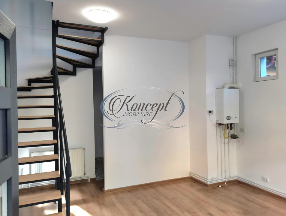 Koncept Imobiliare va ofera spre inchiriere un spatiu de birouri cu acces direct din strada, amplasat in zona Semicentrala a orasului Cluj-Napoca, in Piata Cipariu, intr-o locatie excelent conectata la principalele artere urbane. Proprietatea beneficiaza de accesibilitate foarte buna din orice parte a orasului, fiind situata in apropierea statiilor de transport in comun, magazinelor, cafenelelor, restaurantelor si institutiilor bancare, intr-un context urban dinamic si bine cotat pentru activitati profesionale. Spatiul are o suprafata utila de 50 mp si este dispus pe doua niveluri. La parter se regaseste o incapere open space, un oficiu si un grup sanitar, iar la etaj se afla o a doua incapere cu acces prin scara interioara. Orientarea nordica asigura un ambient constant si potrivit pentru activitati de birou. Proprietatea este izolata termic, finisata modern si se preda nemobilata si neutilata, oferind flexibilitate maxima in amenajare, in functie de specificul activitatii desfasurate. Incalzirea se realizeaza prin centrala termica proprie cu calorifere, iar confortul este completat de aer conditionat si contorizare separata a utilitatilor. Spatiul dispune de vitrina, fara vad pietonal intens, fiind astfel potrivit pentru activitati cu public restrans. In plus, chiriasii beneficiaza de acces la o terasa comuna de aproximativ 10 mp, amenajata cu masa si scaune, precum si de o zona securizata si acoperita pentru depozitarea bicicletelor. Optional, se pot inchiria doua locuri de parcare exterioare. Prin pozitionare, compartimentare si dotari, acest spatiu se remarca drept o solutie eficienta pentru activitati de birou fara public sau cu flux redus, precum arhitectura, avocatura, notariat, consultanta, sediu de firma sau alte servicii profesionale care necesita un cadru discret, central si bine conectat. Pretul competitiv raportat la zona si la avantajele oferite il recomanda ca o alegere echilibrata pentru companii aflate in cautarea unui spatiu functional si reprezentativ. Proprietatea este disponibila incepand cu data de 1 martie. Pentru informatii suplimentare, programarea unei vizionari sau pentru a afla oferta noastra completa va stam la dispozitie telefonic, prin e-mail sau la sediul agentiei noastre, pe str. Aviator Badescu, nr. 19, Cluj-Napoca.