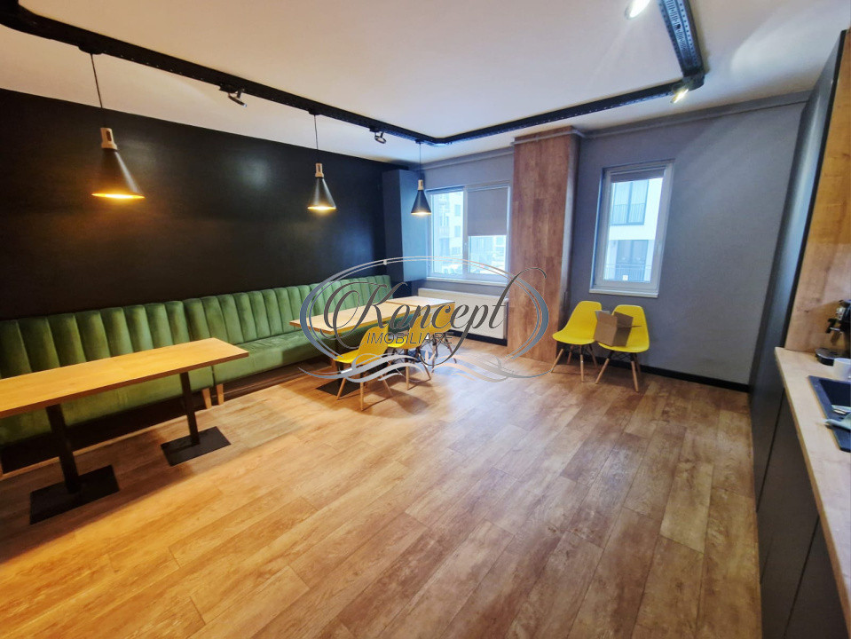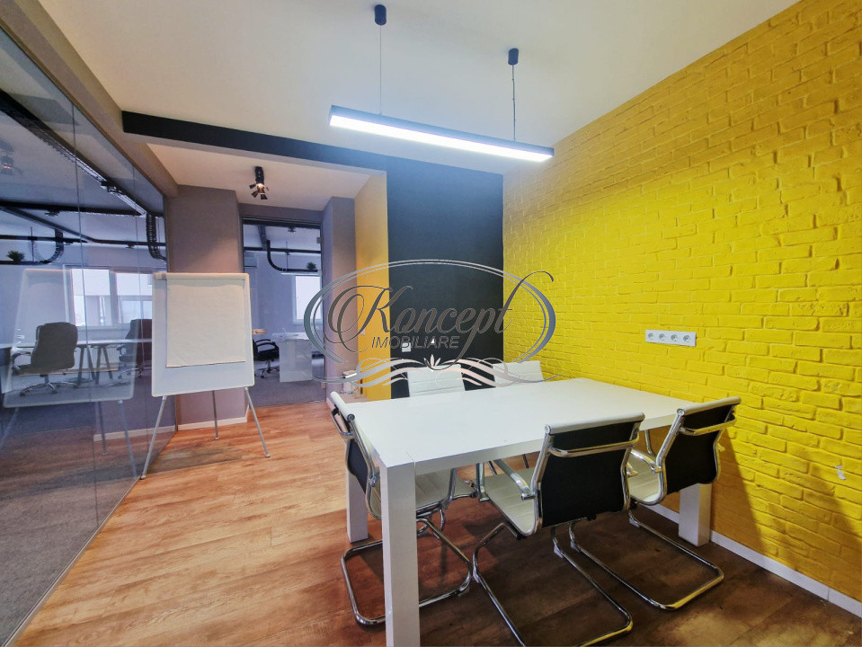 Koncept Imobiliare va ofera spre inchiriere un spatiu de birouri modern, situat in zona Calea Turzii – OMV, una dintre cele mai bine conectate si apreciate zone pentru activitati de business din Cluj-Napoca, cu acces rapid catre centru, cartierele rezidentiale si principalele artere de circulatie. Spatiul are o suprafata utila de 220 mp si este compartimentat eficient pentru activitati de birou, fiind compus din 2 incaperi open-space, sala de meeting, bucatarie cu zona de luat masa si 2 grupuri sanitare. Compartimentarea permite desfasurarea simultana a mai multor activitati, oferind flexibilitate pentru echipe de dimensiuni diferite. Proprietatea beneficiaza de finisaje moderne, spatiul fiind amenajat intr-un stil functional si profesionist. Se inchiriaza complet mobilat, ceea ce permite preluarea imediata si reducerea costurilor initiale de amenajare. Un avantaj important il reprezinta cele 3 locuri de parcare incluse in pret, extrem de valoroase intr-o zona cu trafic intens. Printre punctele forte ale acestui spatiu se numara pozitionarea excelenta pe Calea Turzii, accesibilitatea ridicata, compartimentarea open-space care poate fi adaptata usor diferitelor tipuri de activitati, precum si dotarile care asigura un mediu de lucru confortabil si eficient. Spatiul este recomandat pentru sedii de firma, IT, consultanta, birouri administrative sau activitati corporate, fiind o solutie ideala pentru companiile care isi doresc vizibilitate, acces facil si un spatiu gata de utilizare. Pentru informatii suplimentare, programarea unei vizionari sau pentru a afla oferta noastra completa va stam la dispozitie telefonic, prin e-mail sau la sediul agentiei noastre, pe str. Aviator Badescu, nr. 19, Cluj-Napoca.
