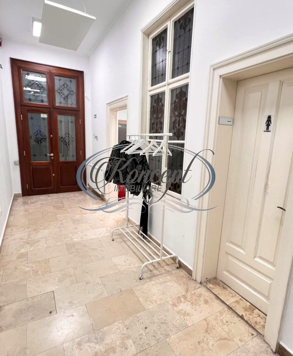 Koncept Imobiliare ofera spre inchiriere un spatiu de birouri situat ultracentral, pe strada Regele Ferdinand, una dintre cele mai prestigioase artere ale orasului. Pozitionarea excelenta in inima Clujului asigura acces facil la mijloace de transport in comun, institutii bancare, restaurante, servicii administrative si zone comerciale, fiind alegerea ideala pentru firme care cauta vizibilitate si accesibilitate maxima. Spatiul se afla la etajul 2 al unei cladiri istorice cu valoare arhitecturala, avand o suprafata utila de 230 mp si tavane inalte, care accentueaza senzatia de spatiu si lumina. Configuratia actuala include 4 incaperi generoase, hol de acces, bucatarie, doua bai si balcon cu panorama urbana. Acestea permit amenajarea eficienta pentru birouri individuale, sali de lucru colaborative sau spatii multifunctionale. Dotarile includ sistem de incalzire cu centrala termica proprie si convectoare, sistem de alarma si senzori de fum, oferind siguranta si confort. Fatada cladirii si interiorul elegant adauga valoare de reprezentare oricarui brand sau activitate profesionala. Este o solutie potrivita pentru firme de consultanta, cabinete profesionale sau birouri executive care doresc o prezenta consolidata intr-o locatie premium. Pentru informatii complete, programarea unei vizionari sau pentru a afla oferta noastra completa va stam la dispozitie telefonic, prin e-mail sau la sediul agentiei noastre, pe str. Aviator Badescu, nr. 19, Cluj-Napoca.