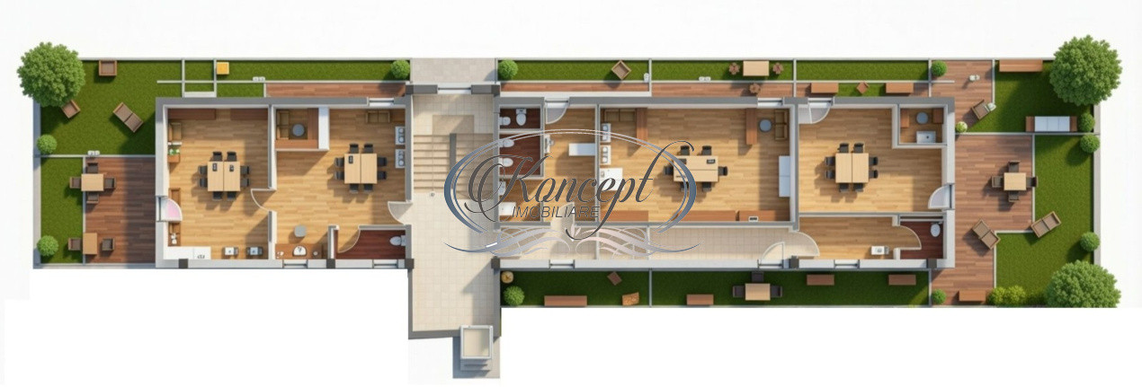 Koncept Imobiliare va ofera spre inchiriere un spatiu pentru birouri, situat pe Calea Turzii, una dintre cele mai circulate si bine conectate artere ale orasului, cu acces rapid catre zona centrala si cartierele rezidentiale importante. Proprietatea este amplasata la etajul 4 al unui imobil nou, cu lift, construit in anul 2010, oferind vizibilitate si accesibilitate sporite. Spatiul are o suprafata utila de 150 mp, la care se adauga o terasa panoramica generoasa de 200 mp, un avantaj major pentru un sediu de firma modern, care doreste un spatiu reprezentativ si zone de relaxare sau evenimente corporate. Compartimentarea actuala include 4 incaperi, 3 bai si hol, insa amenajarile si compartimentarile interioare pot fi realizate in functie de nevoile viitorilor chiriasi, oferind flexibilitate maxima. Imobilul beneficiaza de doua locuri de parcare subterane, un element esential pentru zona Calea Turzii. Spatiul este disponibil imediat, fiind pregatit pentru adaptare si ocupare rapida. Printre punctele forte se remarca amplasarea pe o artera principala, suprafata generoasa, terasa panoramica de mari dimensiuni, flexibilitatea in amenajare, accesul facil si parcarea subterana. Proprietatea este ideala pentru sediu de companie, birouri IT, agentii, firme de consultanta, arhitectura sau management, dar si pentru activitati care necesita un spatiu reprezentativ. Pentru informatii suplimentare, programarea unei vizionari sau pentru a afla oferta noastra completa, va stam la dispozitie telefonic, prin e-mail sau la sediul agentiei noastre de pe strada Aviator Badescu, nr. 19, Cluj-Napoca.