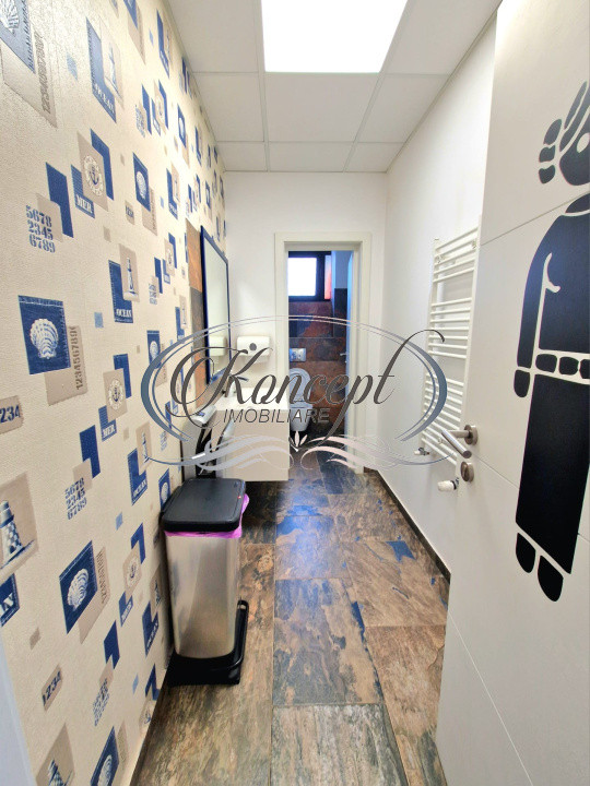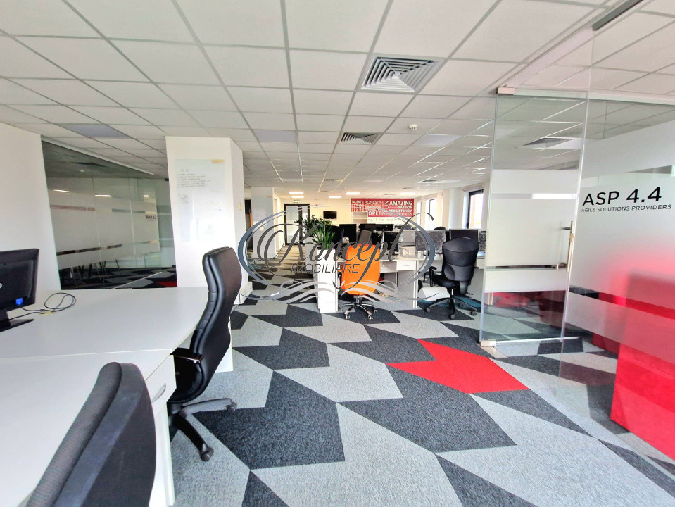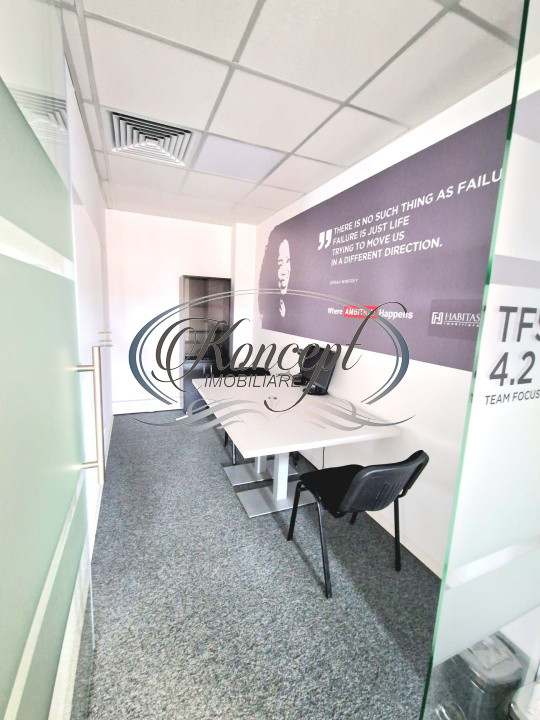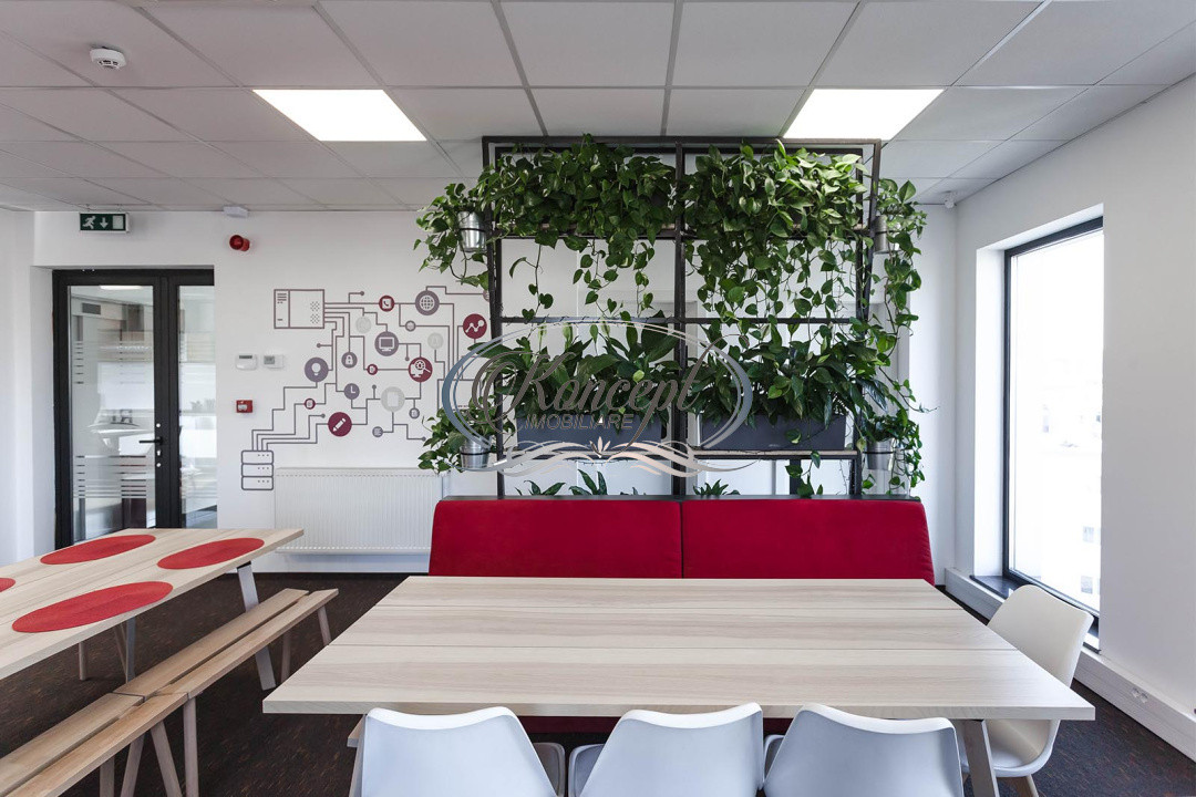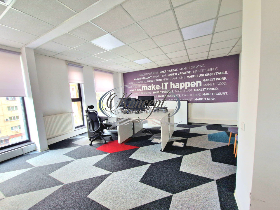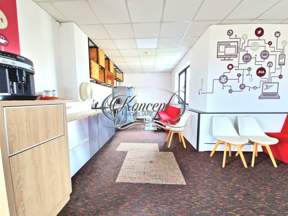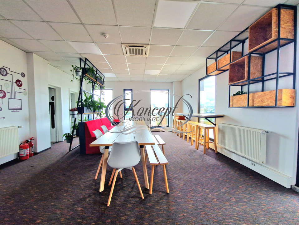 Koncept Imobiliare ofera spre inchiriere un spatiu de birouri situat in cartierul Marasti, pe strada Bucuresti, in imediata proximitate a zonei comerciale Kaufland. Amplasat la etajul 4 si 5 al unei cladiri moderne, cu acces pietonal si auto facil, imobilul beneficiaza de minim 6 locuri de parcare proprii care pot fi inchiriate separat in functie de necesitate – un avantaj important pentru companiile care apreciaza confortul operational si accesibilitatea urbana. Spatiul are o suprafata utila de 340 mp si este configurat in regim open-space, cu 4 incaperi partial compartimentate, grupuri sanitare si acces la bucataria si terasa de la etajul retras. Designul versatil permite recompartimentari in functie de nevoile chiriasului, oferind libertate in organizarea fluxului de lucru. Terasa de 140 mp adauga un plus de functionalitate. Finisajele moderne si dotarile complete transforma acest birou intr-un spatiu “la cheie”: mobilierul este inclus, sistemul de ventilatie permite reglarea temperaturii (aer cald / rece), iar inaltimea interioara de 2.9 m si aportul generos de lumina naturala asigura un ambient optim pentru activitati profesionale. Sistemele de alarma, supraveghere video si acces pe baza de cartela intaresc nivelul de siguranta si control. Ideal pentru firme din domeniile contabilitate, arhitectura, IT, consultanta sau alte servicii business, acest spatiu reprezinta un mix echilibrat intre functionalitate, confort si reprezentativitate. In pret sunt incluse costuile de mentenanta. Disponibil imediat si cu documentatia juridica validata de agentie, este pregatit pentru ocupare. Pentru informatii complete, programarea unei vizionari sau pentru a afla oferta noastra completa va stam la dispozitie telefonic, prin e-mail sau la sediul agentiei noastre, pe str. Aviator Badescu, nr. 19, Cluj-Napoca.