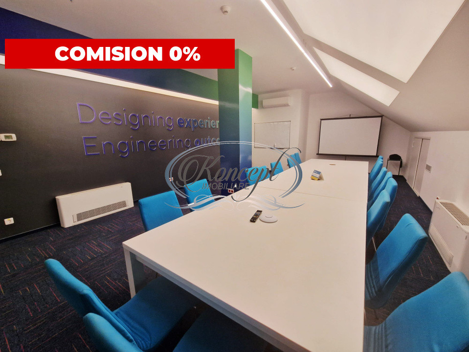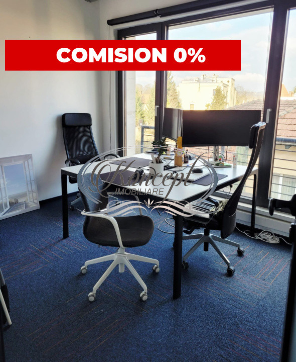 Koncept Imobiliare va ofera spre inchiriere un spatiu de birouri situat intr-o cladire de birouri premium din zona centrala, o locatie strategica pentru companii care isi doresc vizibilitate, accesibilitate si un mediu profesional de top. Spatiul este amplasat la etajul 2 al imobilului si beneficiaza de toate facilitatile necesare pentru desfasurarea activitatilor de business la standarde ridicate. Proprietatea dispune de o suprafata utila de 205 mp si este compartimentata eficient in 9 birouri individuale, camera server dedicata, chicineta, balcon, 2 bai si zona de receptie, oferind flexibilitate in organizarea echipelor si a fluxurilor de lucru. Spatiul este gandit pentru functionalitate maxima, fiind potrivit pentru diverse tipuri de activitati precum sedii de companie, IT, consultanta, servicii sau back-office. Din punct de vedere tehnic, spatiul beneficiaza de finisaje moderne si infrastructura adaptata cerintelor actuale: sistem de ventilatie cu aport de aer proaspat, climatizare prin ventiloconvectoare cu zone independente de temperatura, retea completa pentru IT si comunicatii, precum si camera server dedicata echipamentelor. Cladirea este dotata cu lift, administrare profesionala, acces securizat pe baza de card, acces 24/7 si paza permanenta, asigurand un mediu sigur si eficient pentru desfasurarea activitatii. Un avantaj major il reprezinta includerea in pret a utilitatilor (curent, internet etc.), precum si accesul la facilitati suplimentare, cum ar fi sala de conferinte. De asemenea, sunt incluse 5 locuri de parcare supraterane nominale, un beneficiu esential in zona centrala. Costurile de administrare sunt de 2 euro/mp + TVA si se adauga la pretul de inchiriere. Prin pozitionare, compartimentare si dotari, acest spatiu reprezinta o alegere excelenta pentru companiile care isi doresc un sediu reprezentativ, complet functional si disponibil imediat, facilitand o relocare rapida fara investitii suplimentare. Pentru informatii suplimentare, programarea unei vizionari sau pentru a afla oferta noastra completa va stam la dispozitie telefonic, prin e-mail sau la sediul agentiei noastre, pe str. Aviator Badescu, nr. 19, Cluj-Napoca.