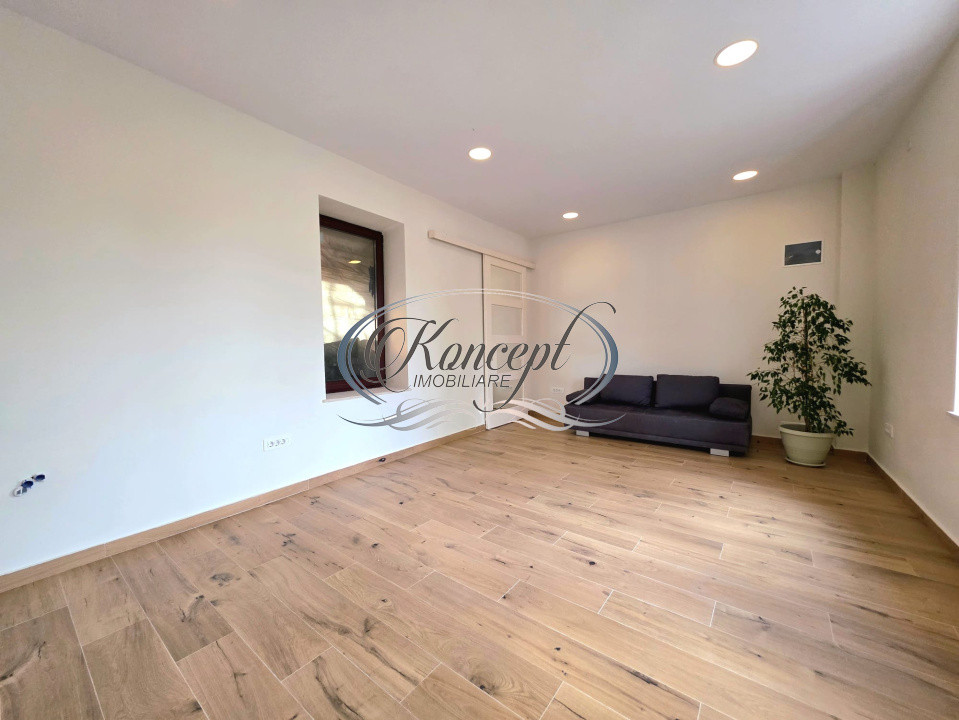 oncept Imobiliare va ofera spre inchiriere un spatiu de birou si servicii tertiare situat in zona centrala / semicentrala, Gara – Parcul Feroviarilor, pe str. Traian, la aproximativ 100 m de parc. Proprietatea se afla la parterul unei vile, cu intrare separata direct din strada si front generos de aproximativ 12 ml, beneficiind de usa si doua geamuri la strada, vizibile pentru trafic auto si pietonal. Accesul este facil atat cu masina, cu posibilitate de parcare stradala pentru 5-6 autoturisme, cat si cu mijloacele de transport in comun, zona fiind deservita de bus, tramvai si troleibuz. Spatiul are o suprafata utila interioara de aproximativ 45 mp si o compartimentare eficienta pentru activitati de birou sau servicii. Interiorul este format dintr-o zona de receptie/primire clienti, o incapere principala de lucru, o chicineta cu rol de depozitare si o baie. Inaltimea de 2,95 m confera senzatia de spatiu si aer, iar orientarea vestica asigura lumina naturala placuta in a doua parte a zilei. Incalzirea se face prin pardoseala, cu contorizare separata, ceea ce permite controlul facil al costurilor de utilitati. Finisajele sunt de calitate, cu parchet si gresie, iluminat integral cu corpuri LED economice si usi din lemn masiv premium, spatiul fiind renovat complet si pregatit pentru preluare imediata. Se inchiriaza nemobilat, oferind viitorului chirias libertatea de a-si personaliza amenajarea in functie de identitatea brandului si specificul activitatii. Spatiul nu este dotat in acest moment cu sistem de climatizare sau alarma, aspect ce poate fi adaptat ulterior in functie de nevoile chiriasului. Un avantaj important il reprezinta curtea de aproximativ 40 mp, aflata in folosinta exclusiva a spatiului, ideala pentru amenajarea unei zone de relaxare pentru angajati sau a unui loc de fumat, cu mobilier de exterior, jardiniere si decor personalizat. Expunerea stradala foarte buna, impreuna cu posibilitatea montarii unei firme luminoase sau a unui panou publicitar atat pe gard, cat și pe cladire (exista deja infrastructura pentru acest lucru), transforma spatiul intr-o optiune atractiva pentru businessuri care au nevoie de vizibilitate. Vecinatatile sunt valoroase pentru activitati de birouri si servicii: Parcul Feroviarilor la doar cateva minute de mers pe jos, Gara, o cladire de birouri in apropiere, precum si accesul rapid catre centrul orasului. In cladire mai exista locuinte si un studio de yoga, ceea ce contribuie la o atmosfera linistita, potrivita pentru activitati cu trafic moderat de clienti. Proprietarii nu agreaza alimentatie publica sau activitati invazive de tip toaletaj canin, spatiul fiind dedicat serviciilor curate si businessurilor care isi doresc o imagine profesionista. Aceasta proprietate se potriveste foarte bine pentru birouri de consultanta, agentie de turism, agentie imobiliara, birou de arhitectura sau proiectare, cabinet de coaching, precum si pentru saloane de beauty (coafor, frizerie, manichiura, cosmetica, tatuaje) sau alte servicii tertiare care valorifica atat proximitatea de centrul orasului, cat si accesul facil pentru clienti si angajati. Spatiul este disponibil imediat, iar proprietarii prefera contracte pe termen de minimum un an. Pentru informatii suplimentare, programarea unei vizionari sau pentru a afla oferta noastra completa va stam la dispozitie telefonic, prin e-mail sau la sediul agentiei noastre, pe str. Aviator Badescu, nr. 19, Cluj-Napoca.